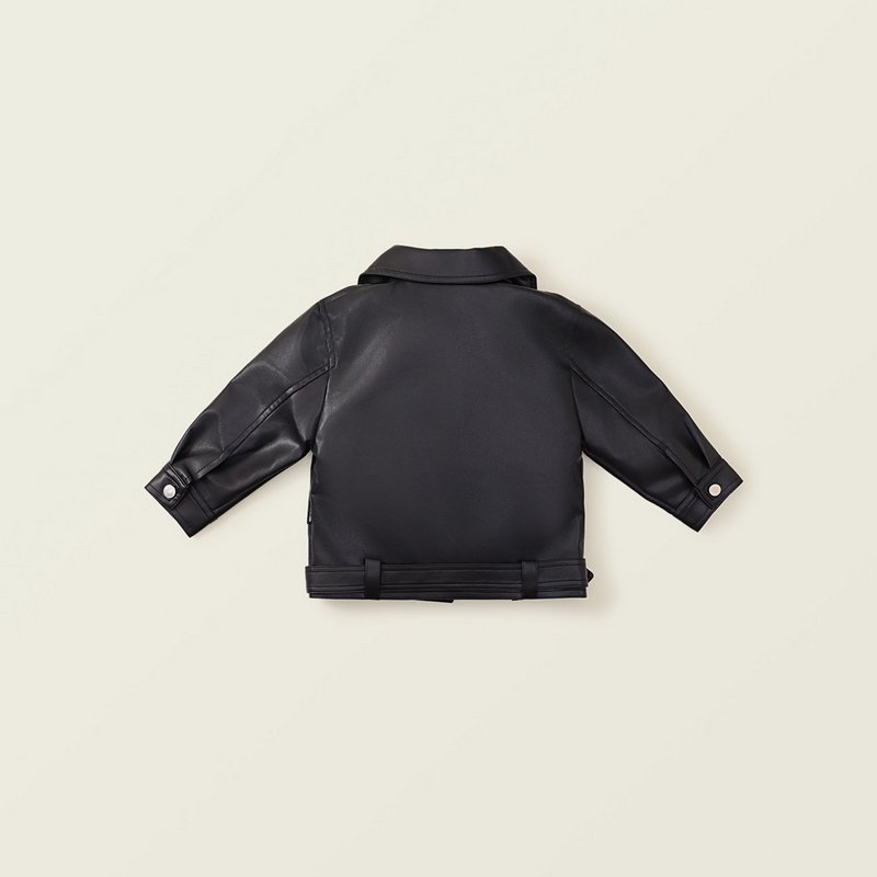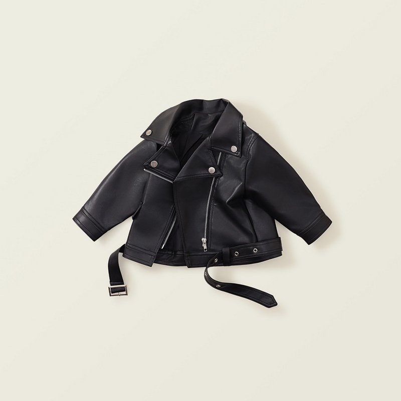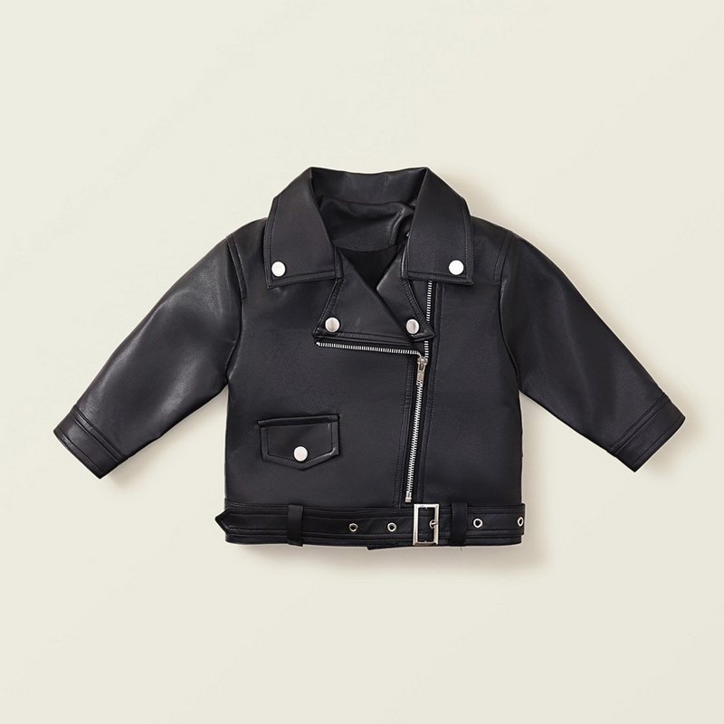Girls Fashion Casual Leather Lapel Long Sleeve Jacket