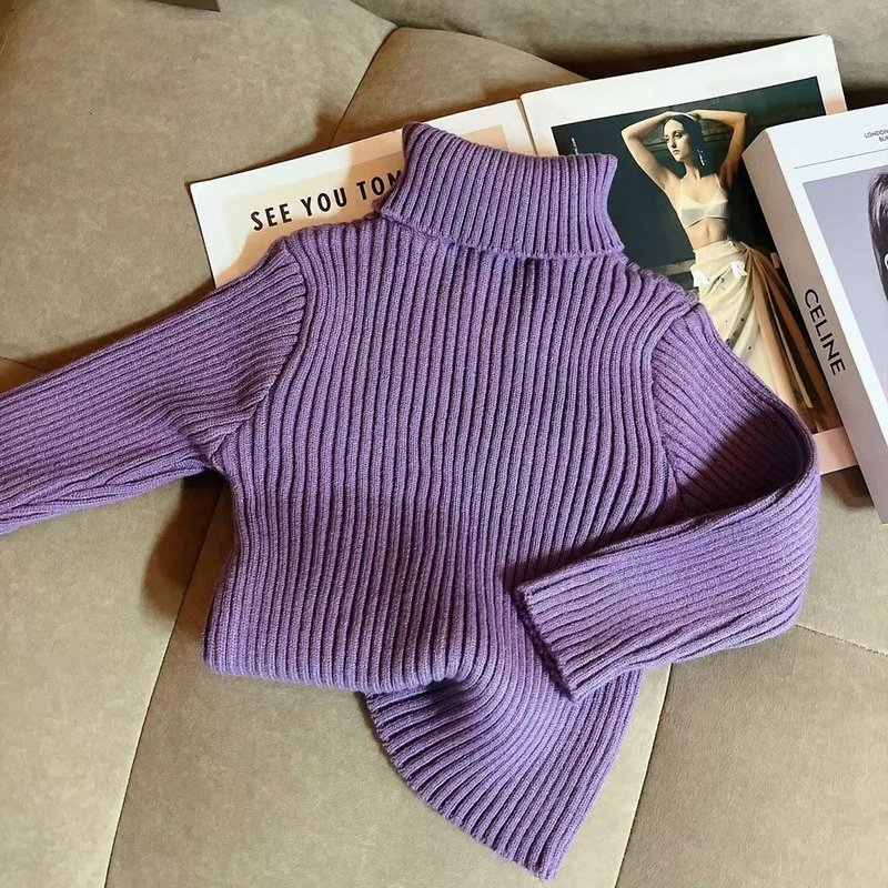 Girls Fashion Casual Purple Long-Sleeve Sweater