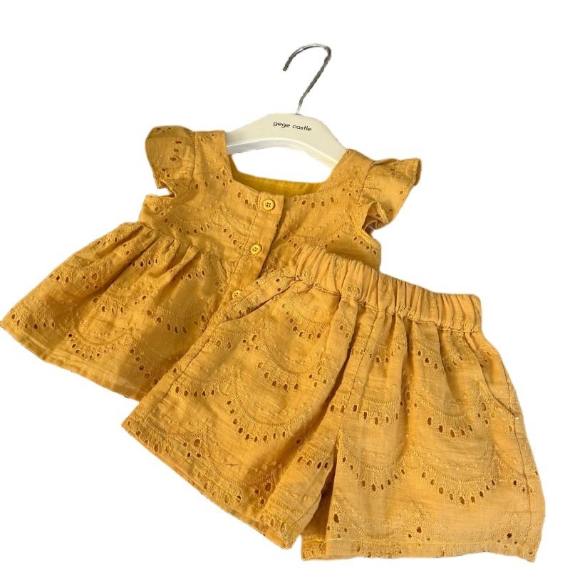 Girls Fashion Casual Solid Color Lace Hollow-Out Sleeveless Tank Top Thin Shorts Two-Piece Set