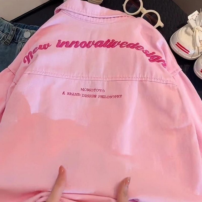 Girls Fashion Casual Solid Color Lapel Long-Sleeve Denim Jacket
