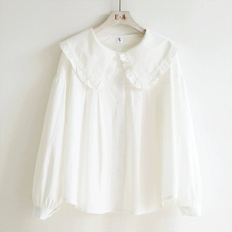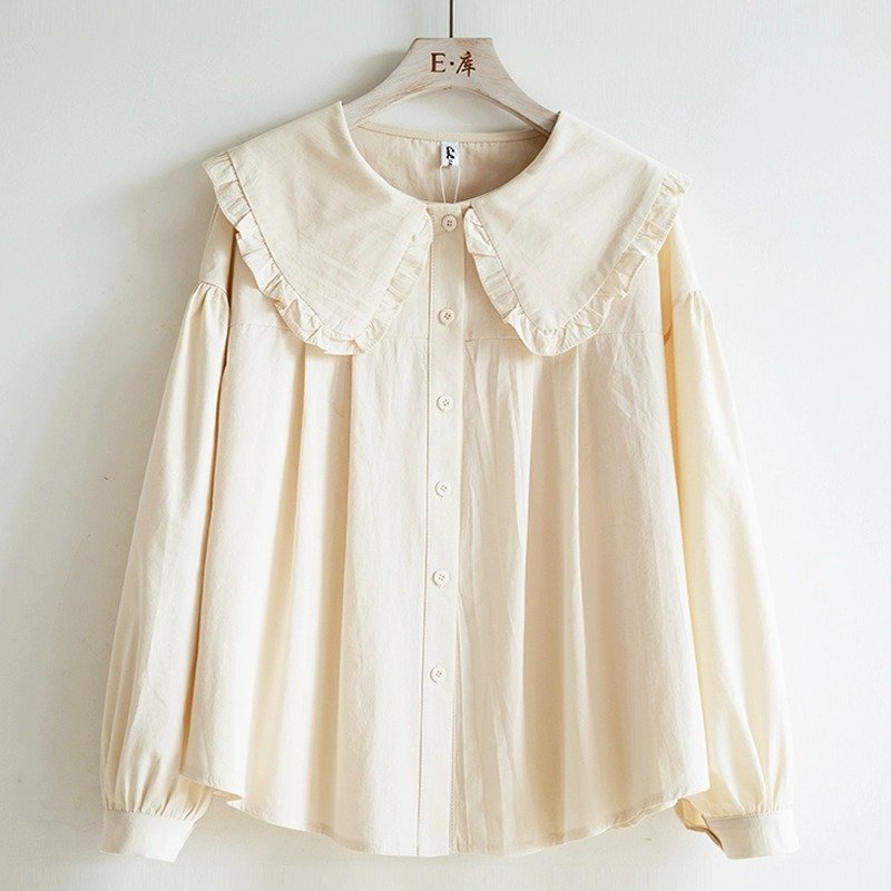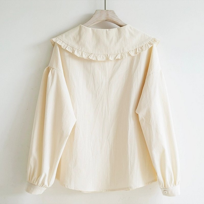 Girls Fashion Casual Solid Color Ruffled Lapel Long Sleeve Blouse