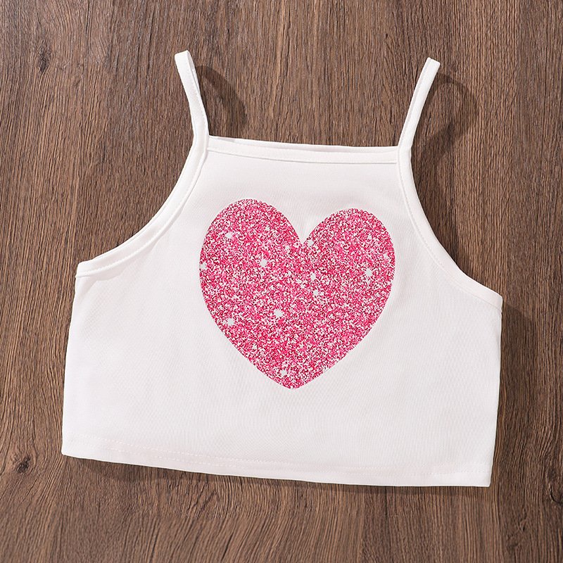 Girls Fashion Casual Stripe Lapel Long Sleeve Blouse Love Printed Camisole Loose Shorts Three-Piece Set