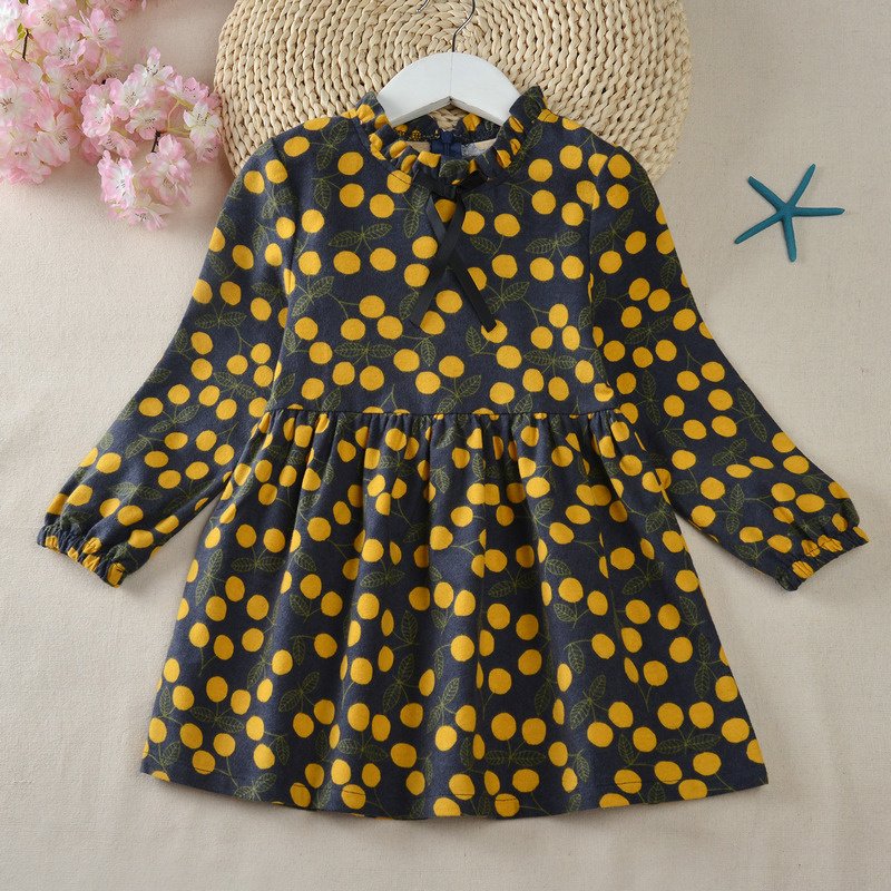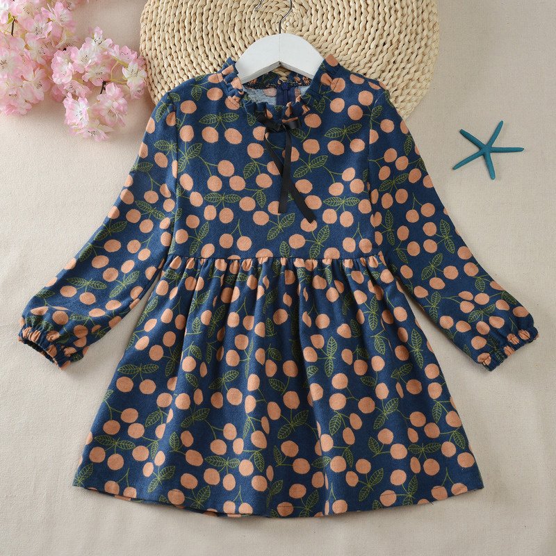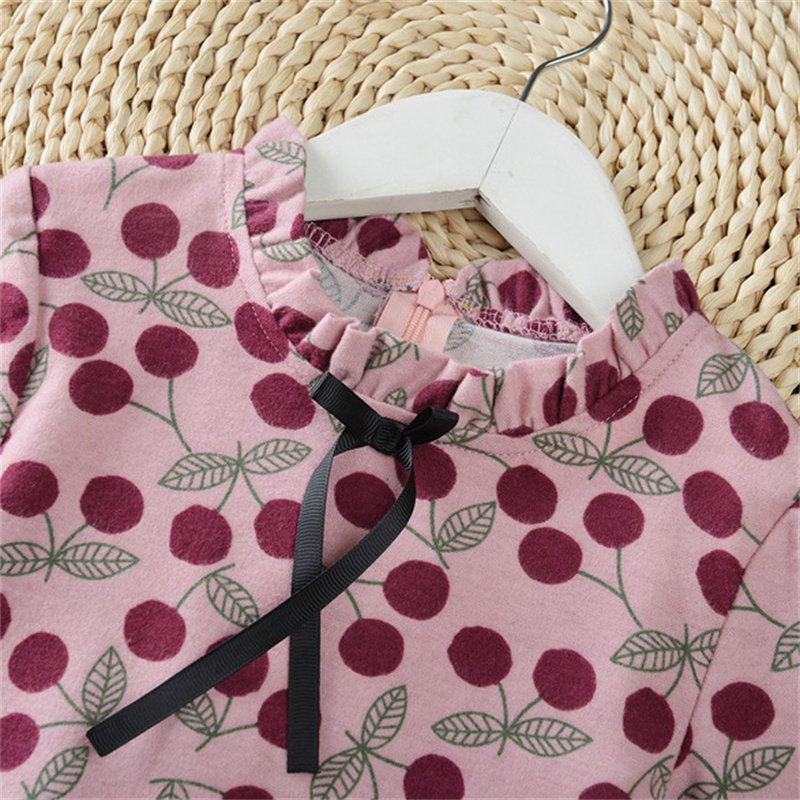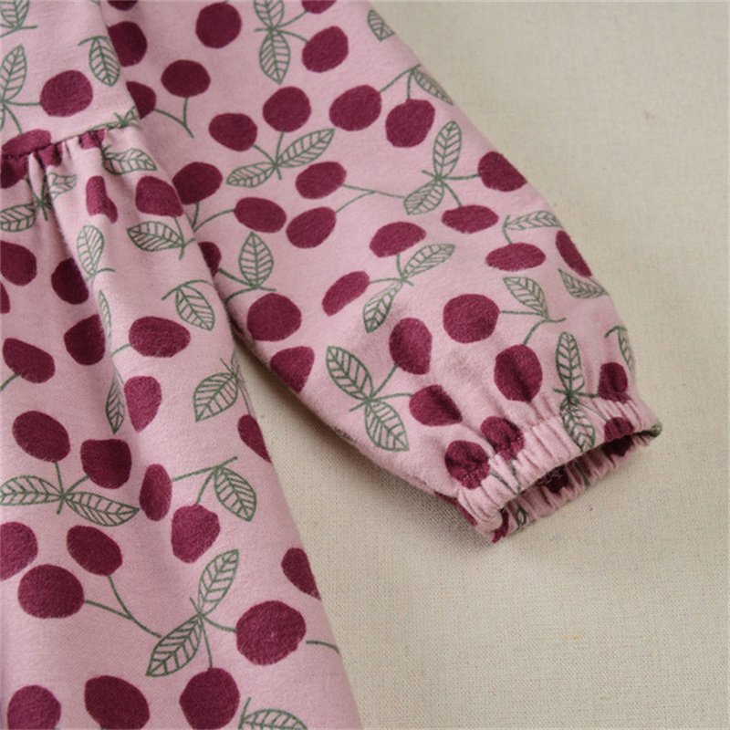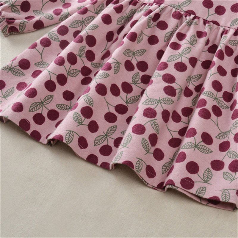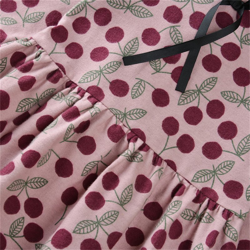 Girls Fashion Cherry Printed Long-sleeves Dress