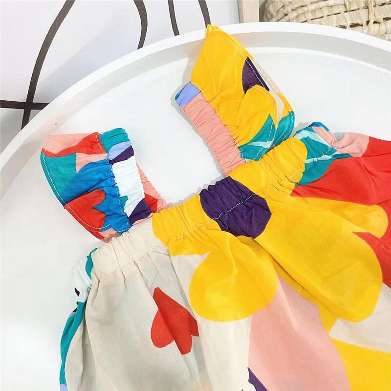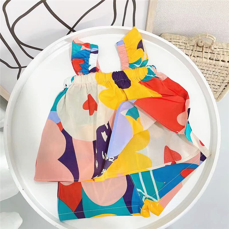 Girls Fashion Colorful Flower Tops And Shorts Set