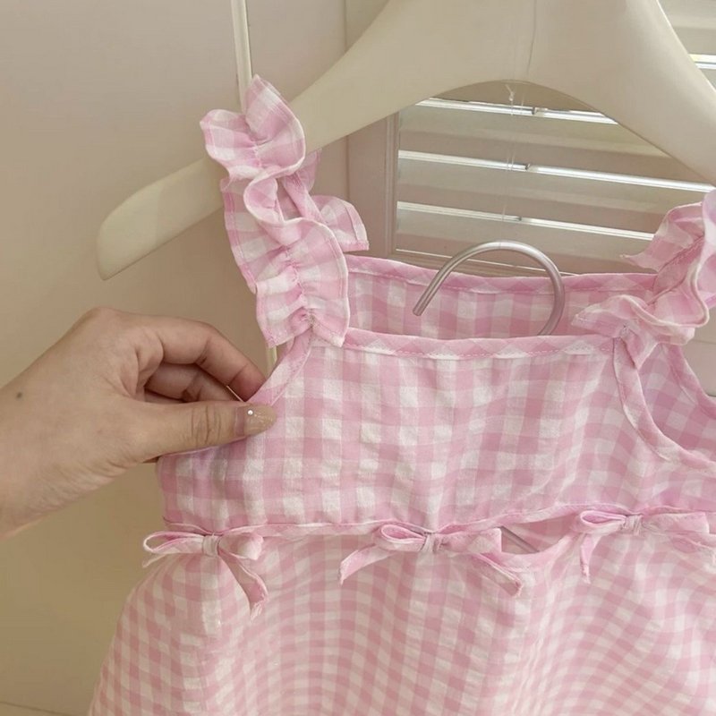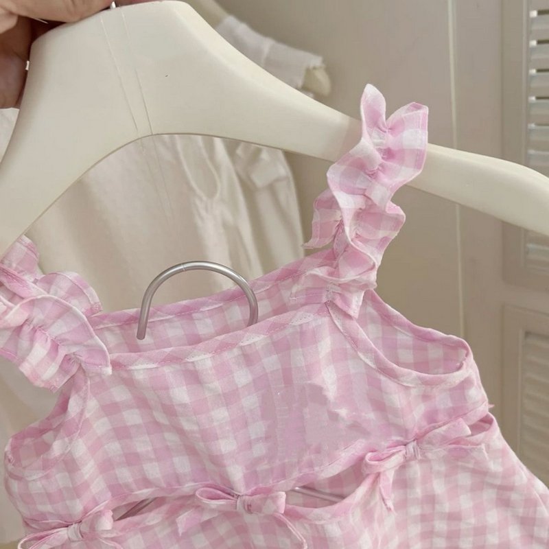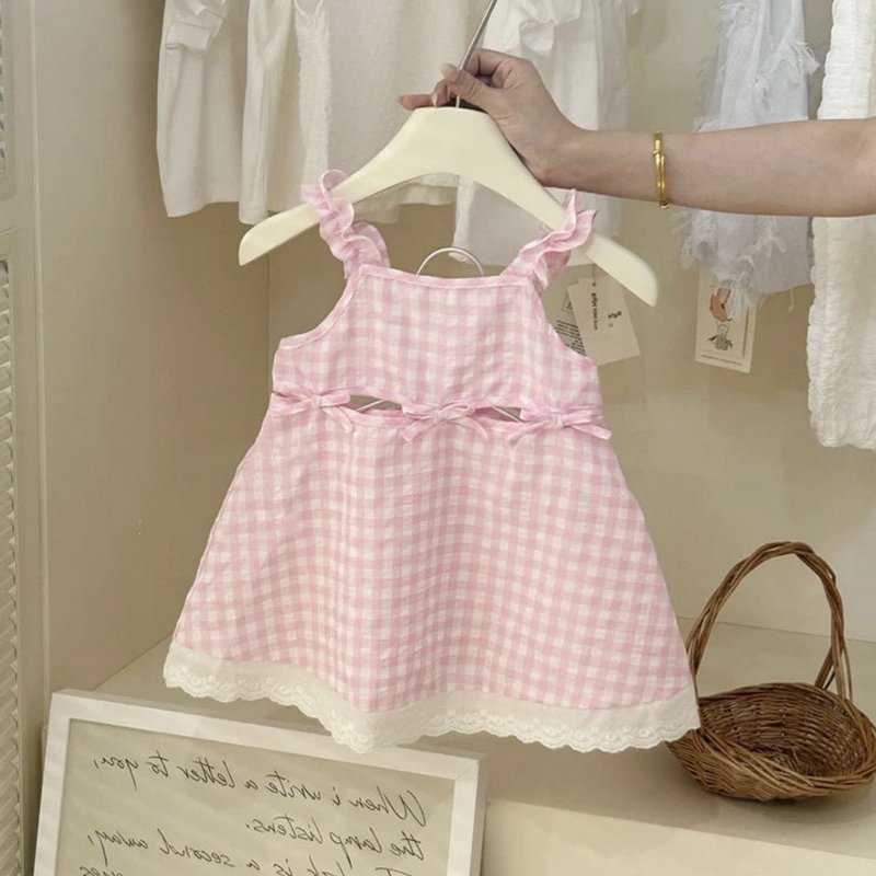 Girls Fashion Cute Plaid Lace Splicing Sleeveless Dress