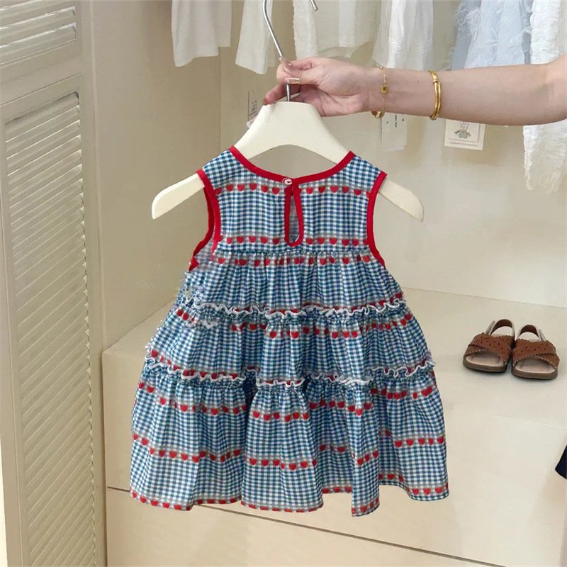 Girls Fashion Cute Plaid Printed Sleeveless Loose Dress