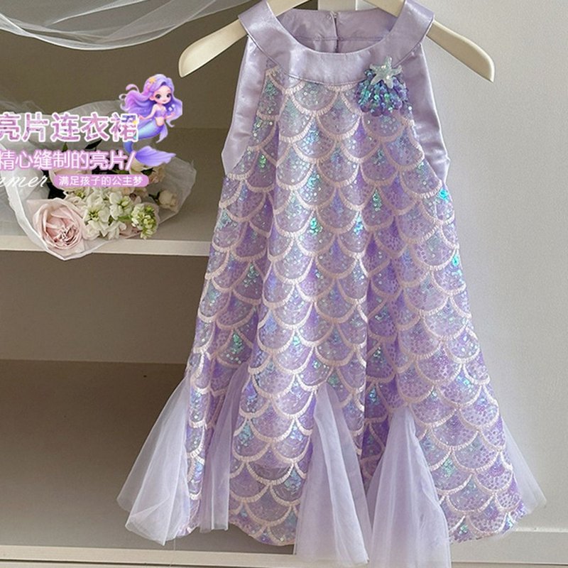 Girls Fashion Cute Purple Mermaid Sleeveless Dress