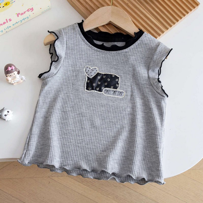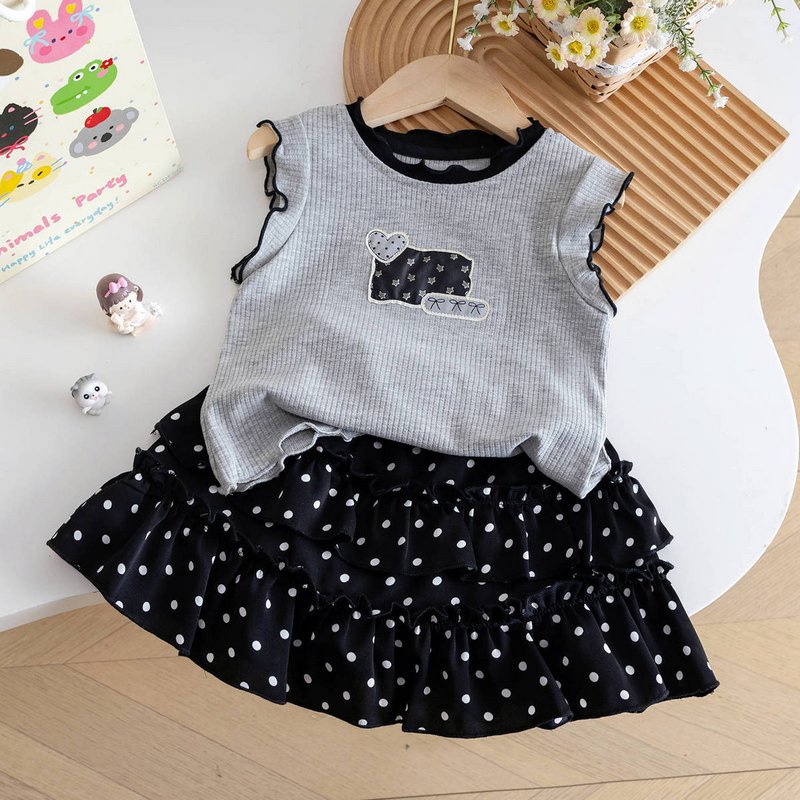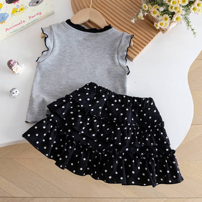 Girls Fashion Cute Sleeveless Tank Top Wave Point Skirt Two-Piece Set