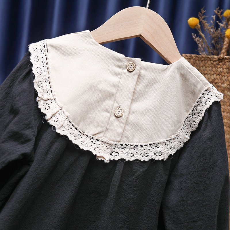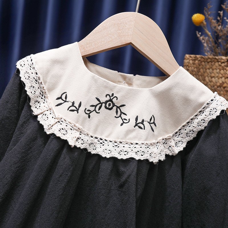 Girls Fashion Elegant Floral Embroidered Long-Sleeve Loose Dress