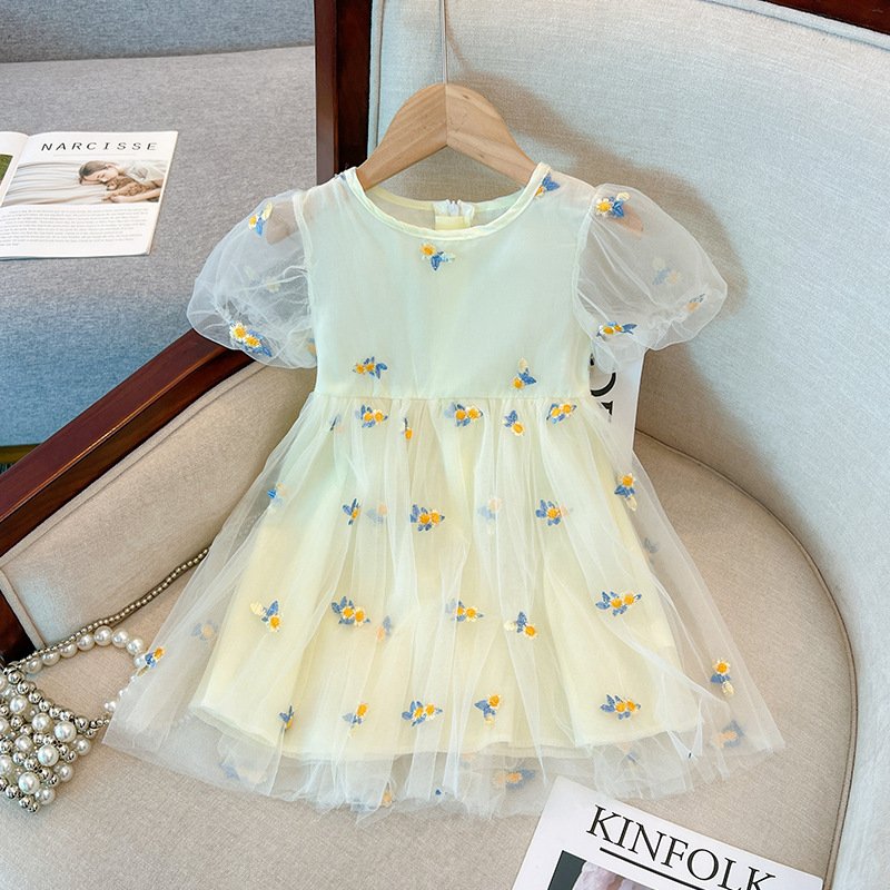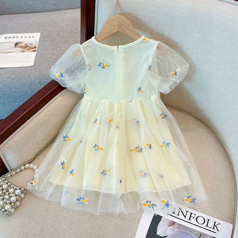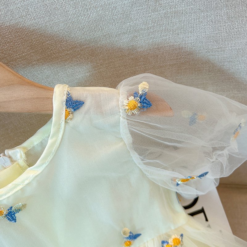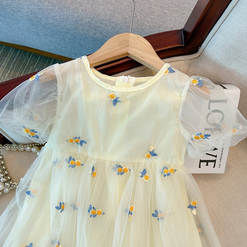 Girls Fashion Floral Embroidery Mesh Dress