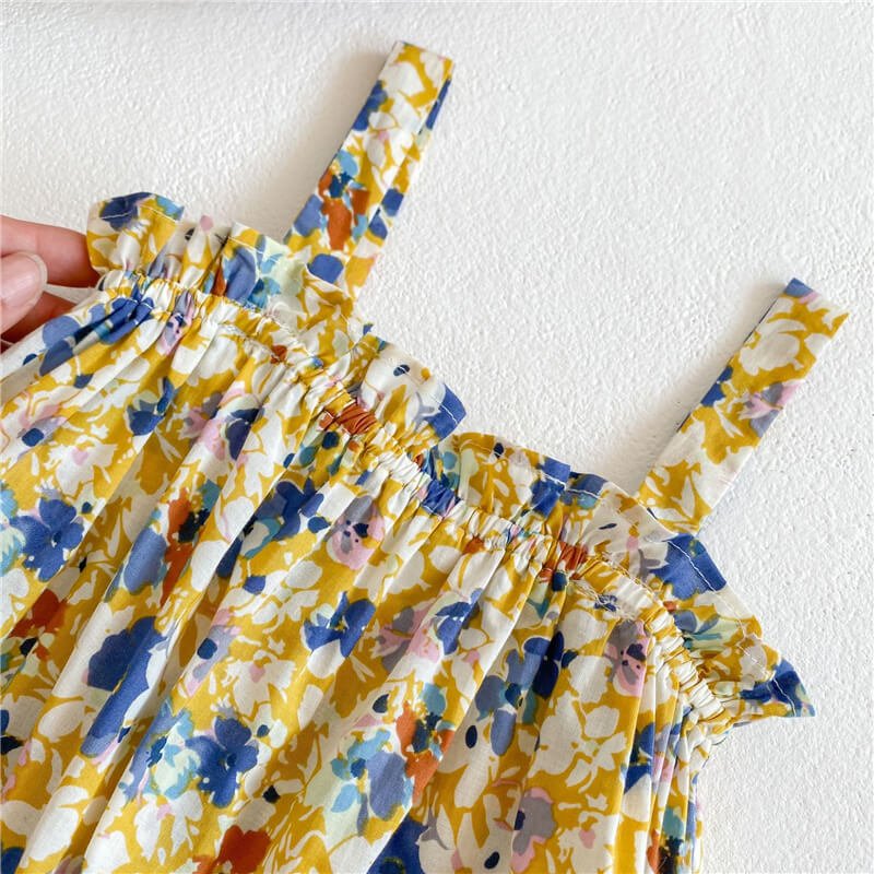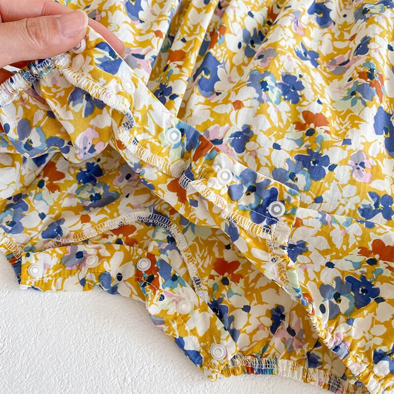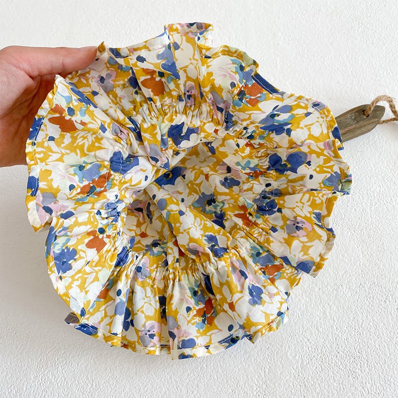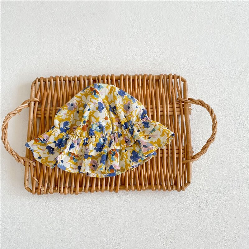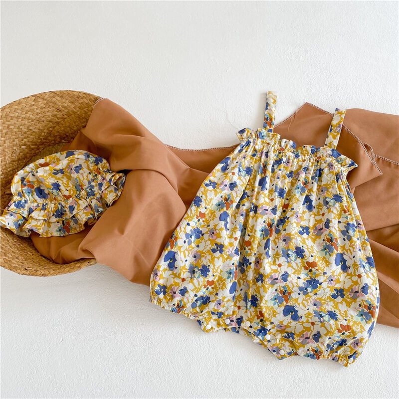 Girls Fashion Floral Romper With Bucket Hat