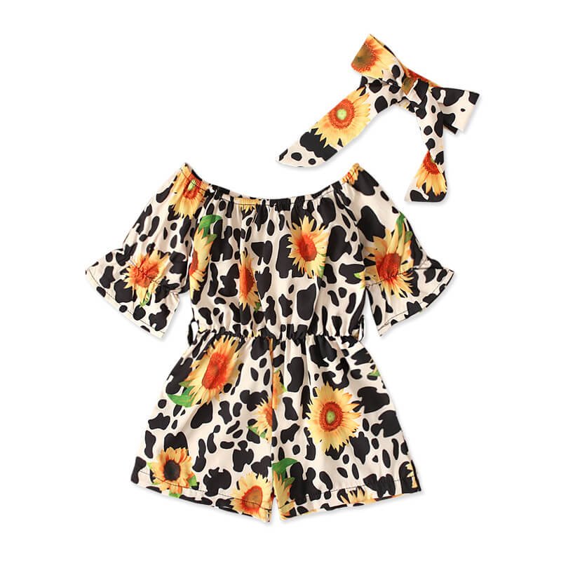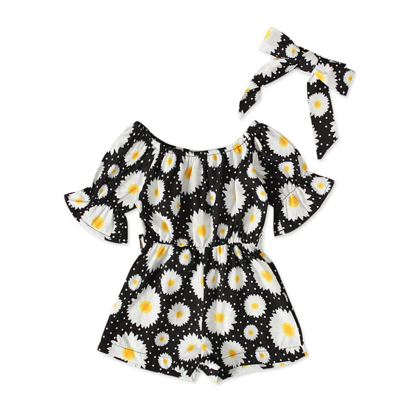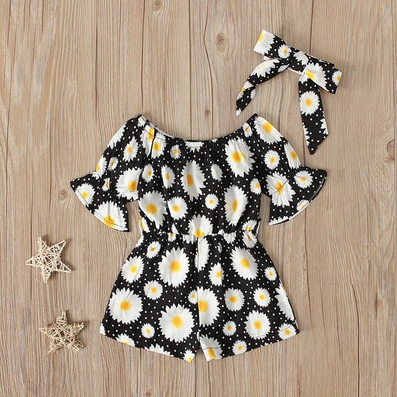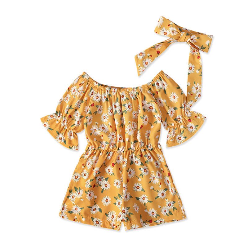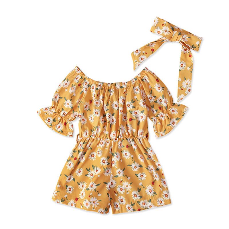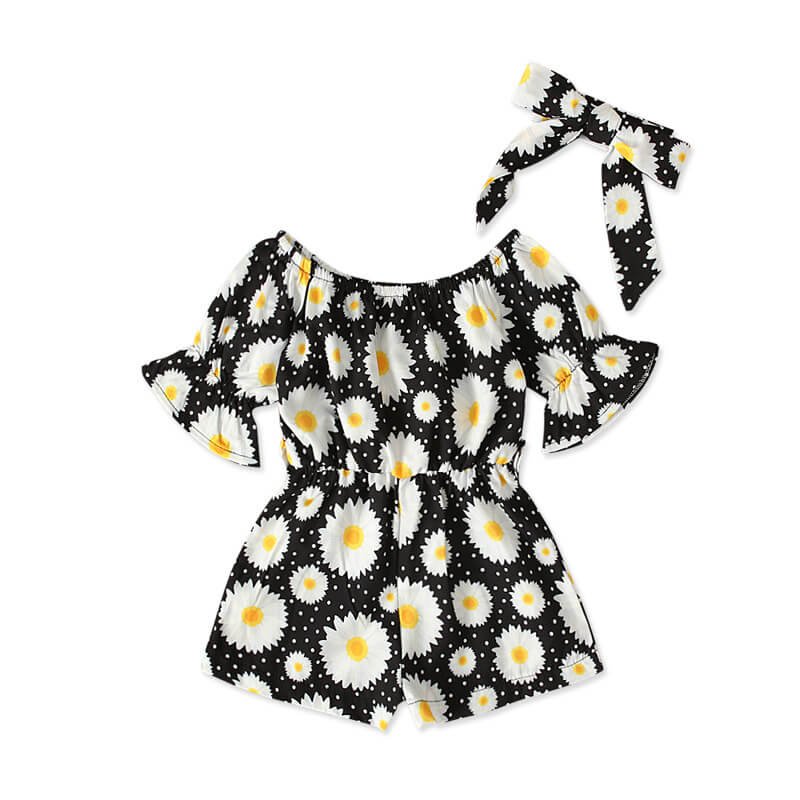Girls Fashion Floral Short-sleeves Romper And Headband Set