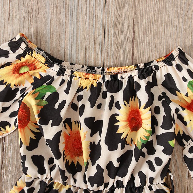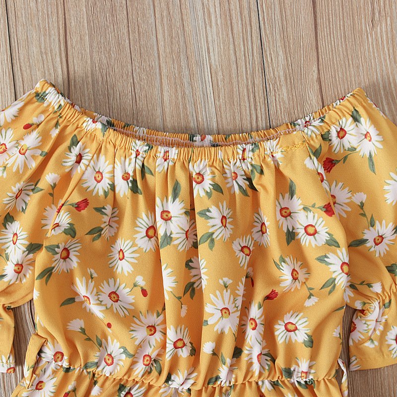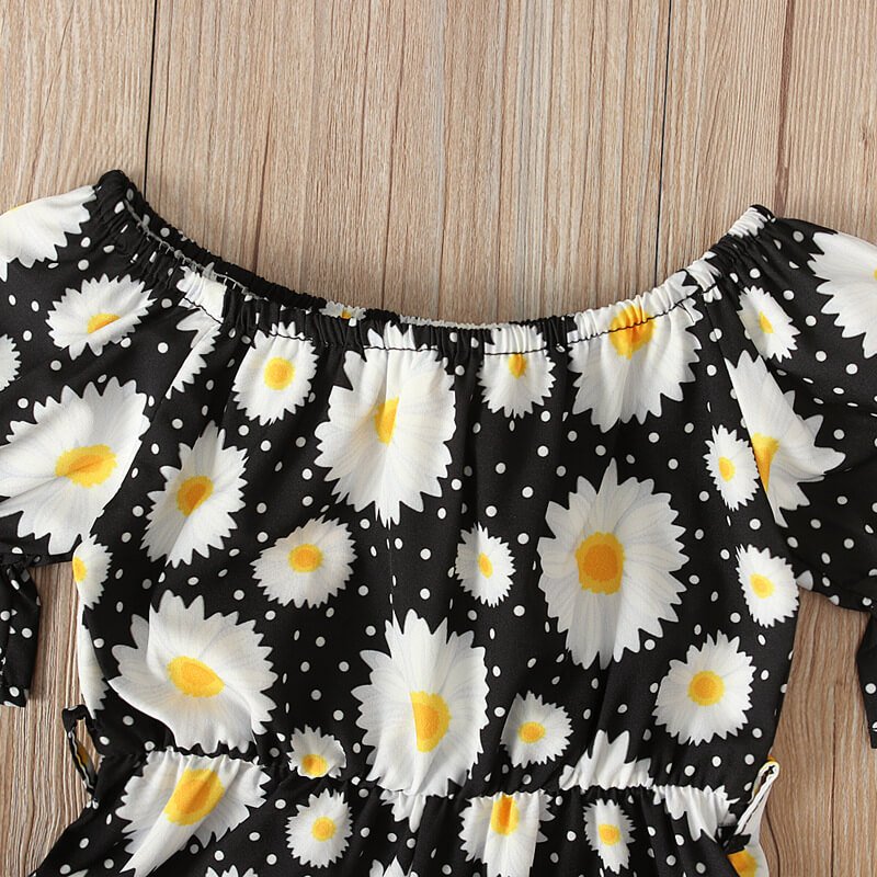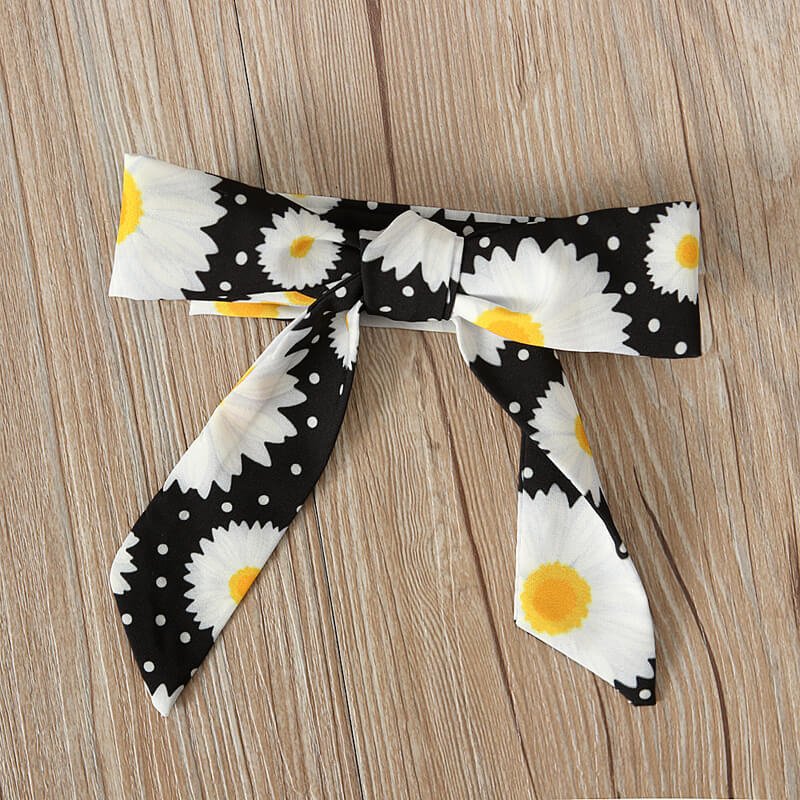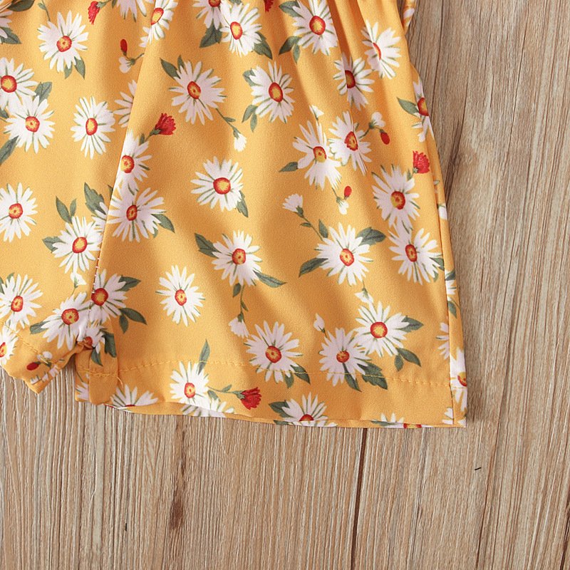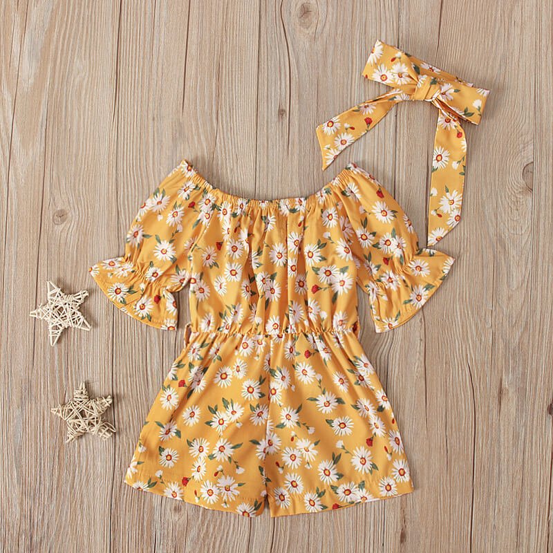 Girls Fashion Floral Short-sleeves Romper And Headband Set
