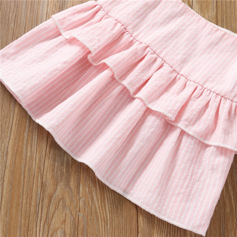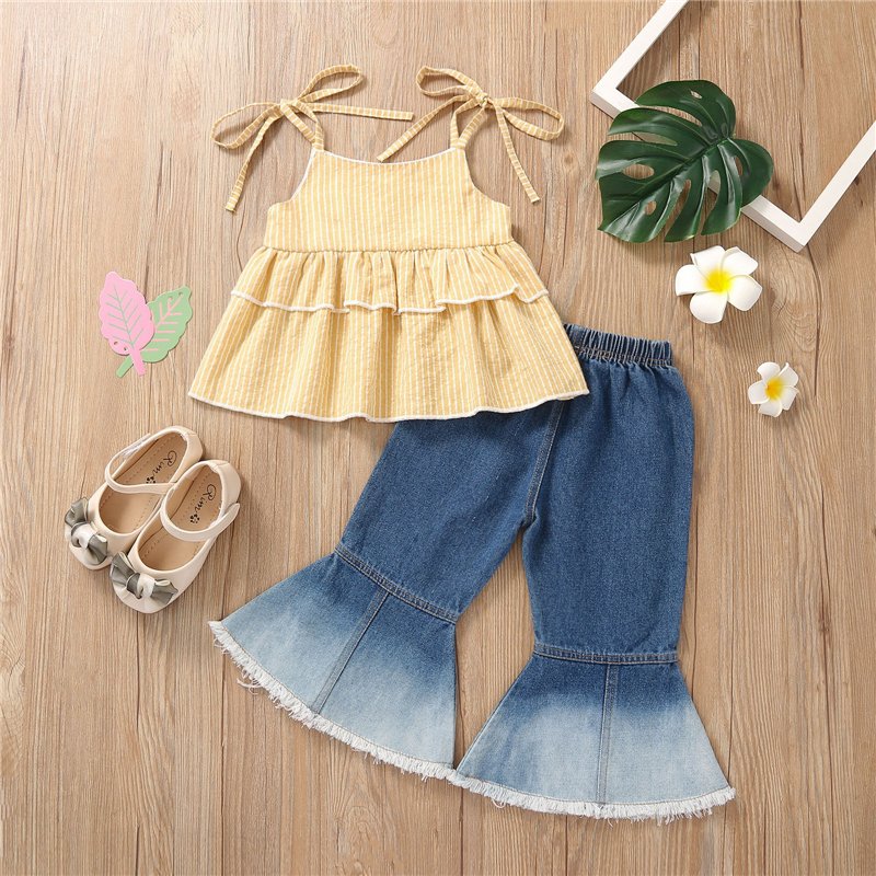 Girls Fashion Flounced Striped Tops And Bell-bottomed Pants Set