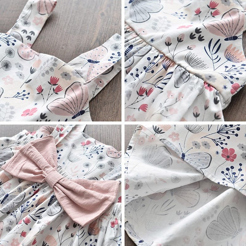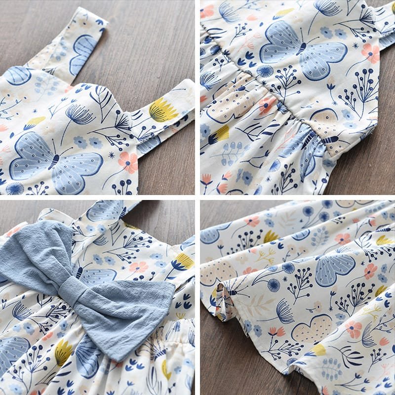 Girls Fashion Flower Butterfly Pattern Bowknot Decor Dress