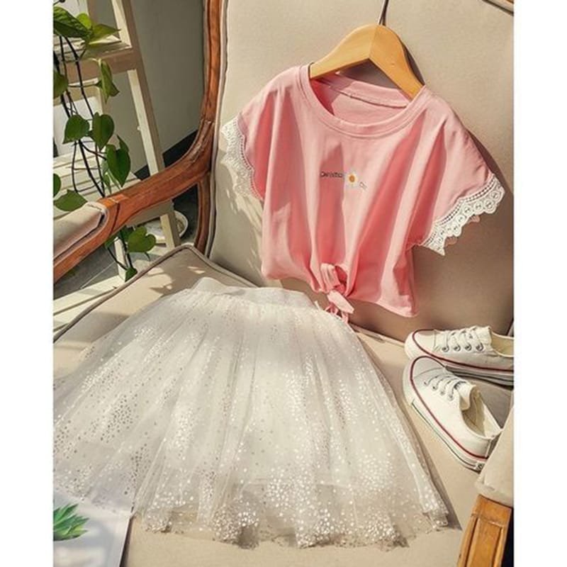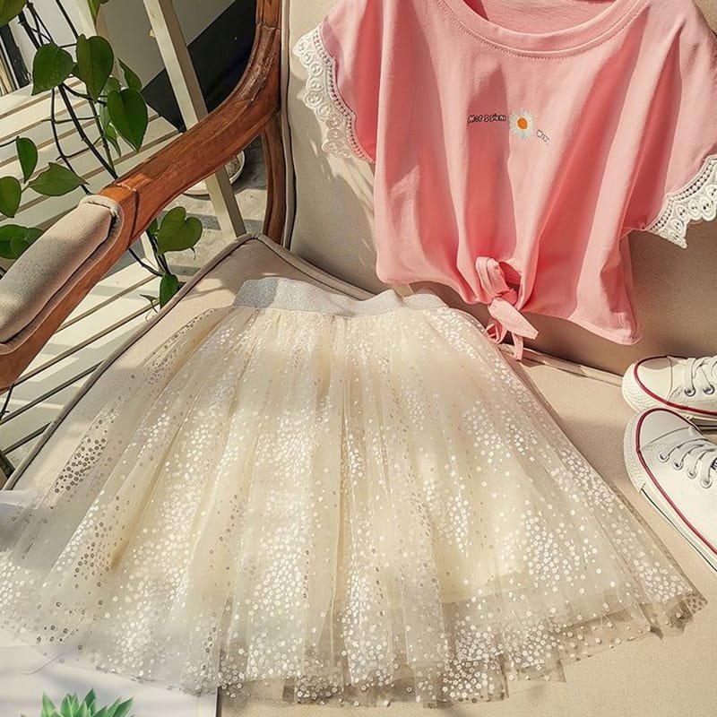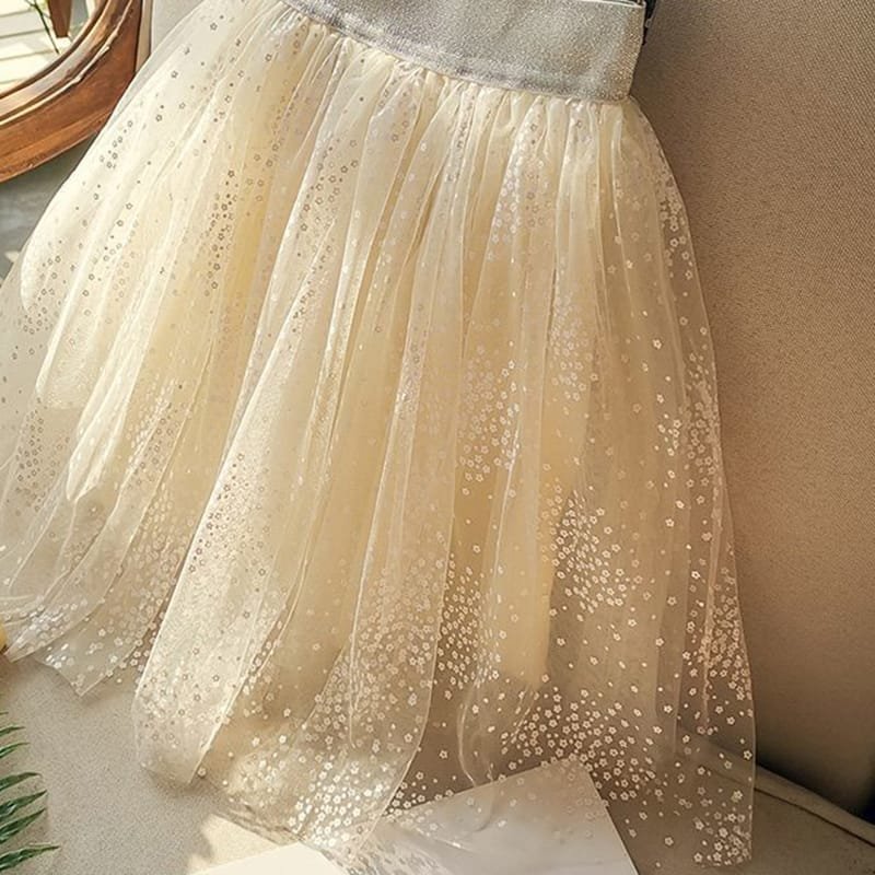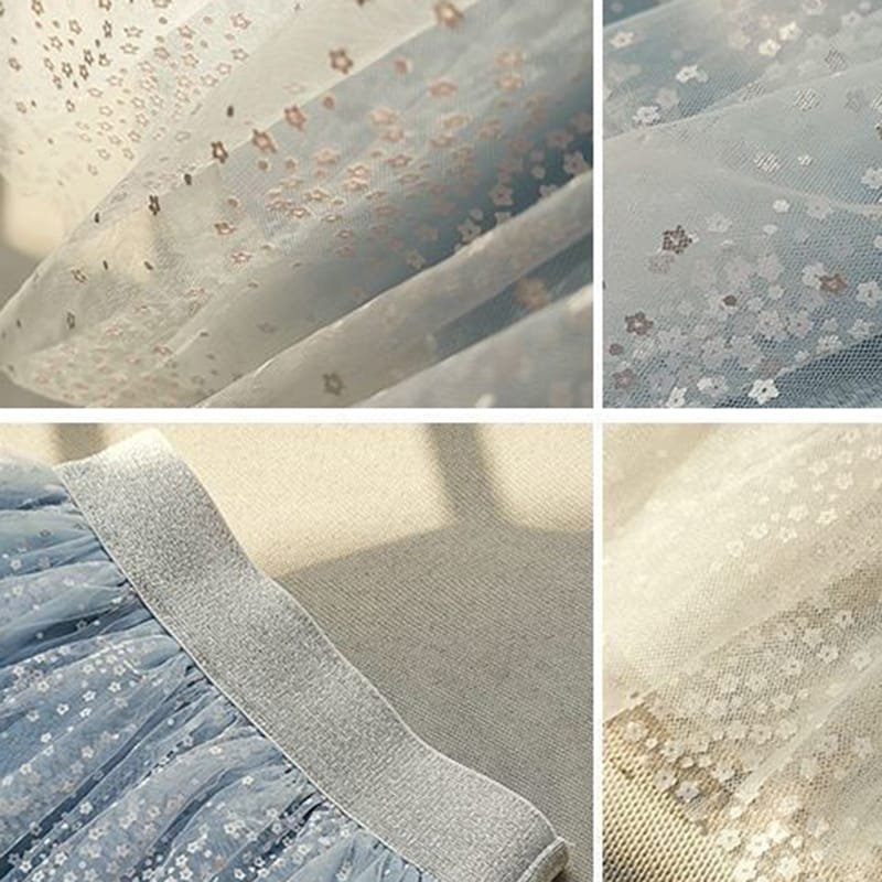Girls Fashion Flower Pattern Pleated Gauze Fluffy Skirt