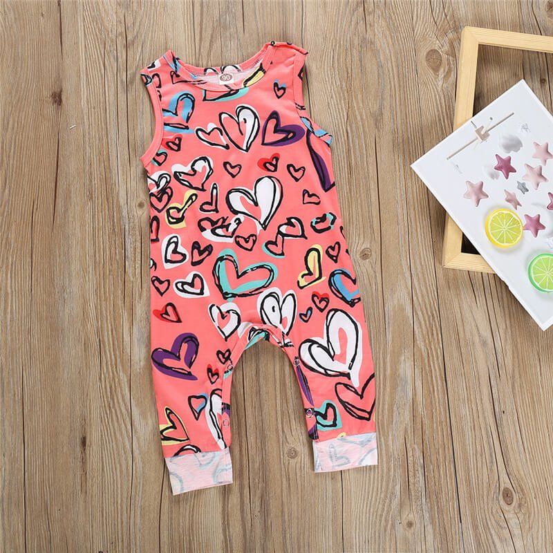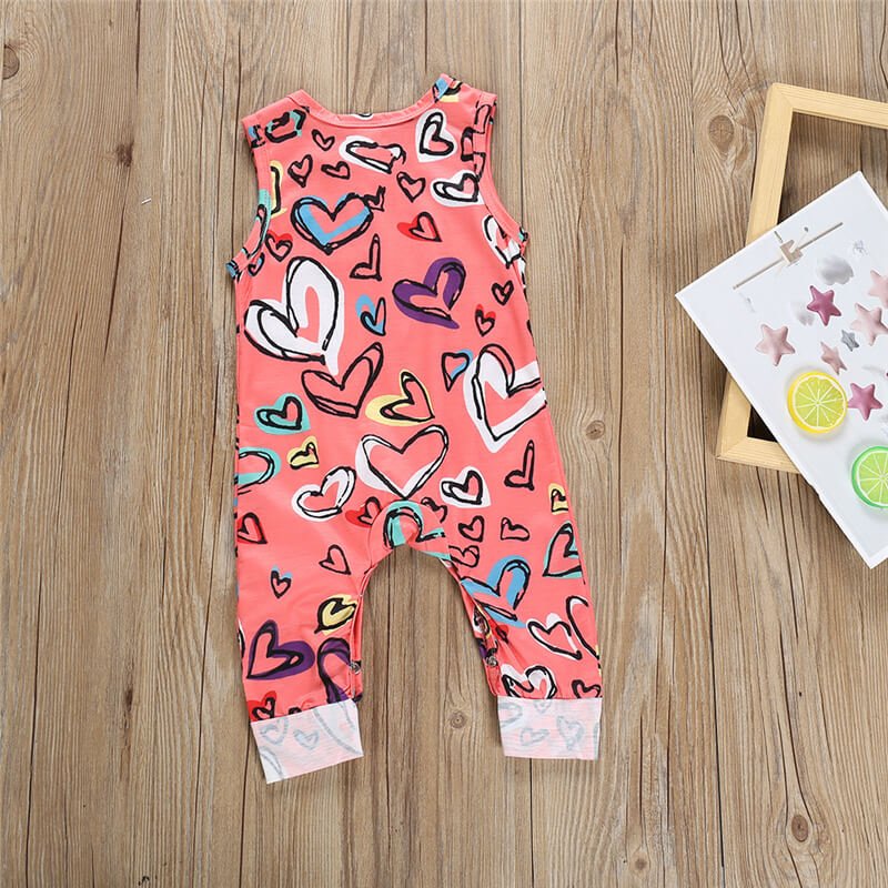 Girls Fashion Heart Pattern Sleeveless Jumpsuit