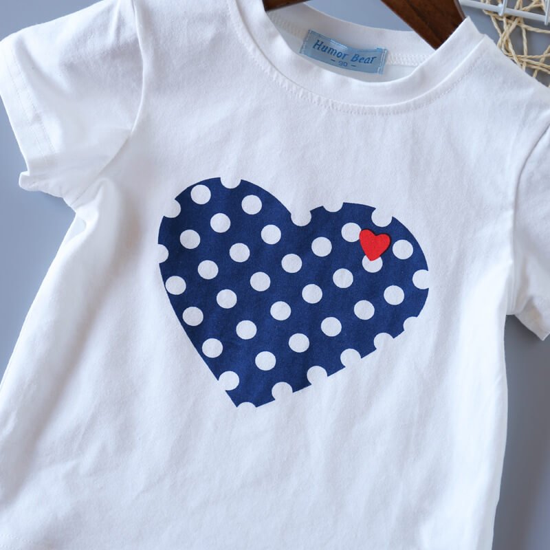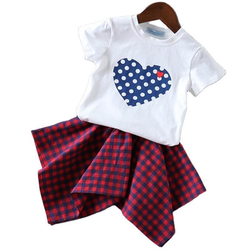 Girls Fashion Heart Pattern T-Shirt And Plaid Skirt