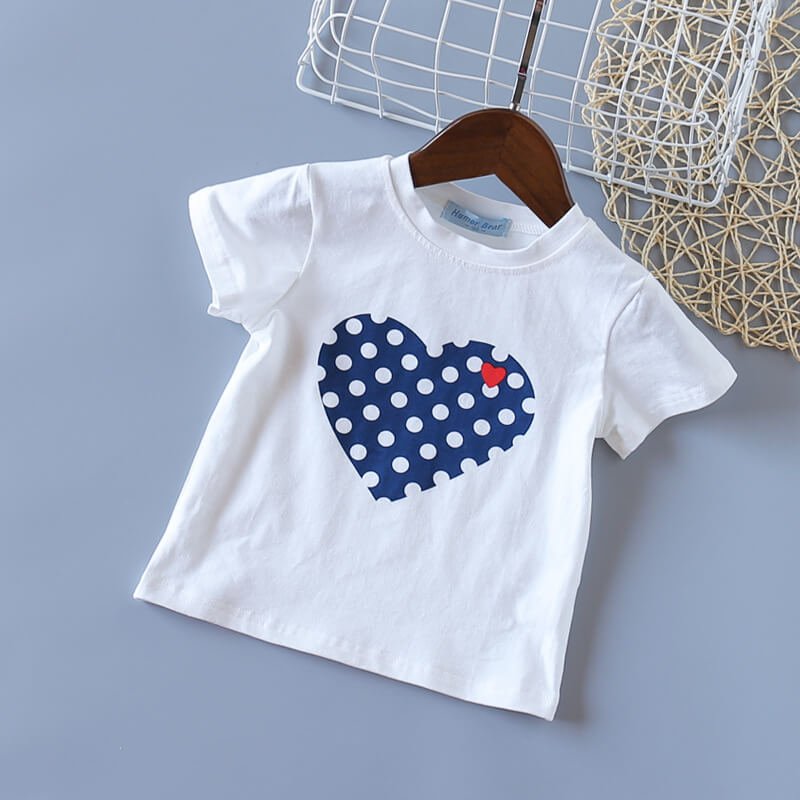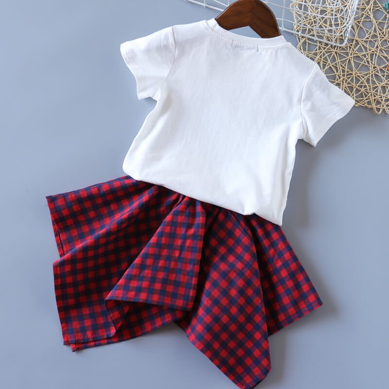 Girls Fashion Heart Pattern T-Shirt And Plaid Skirt