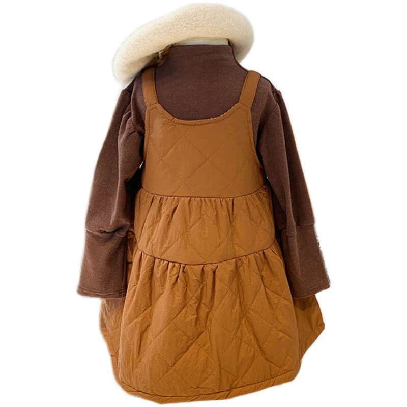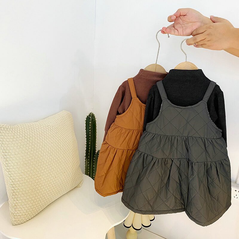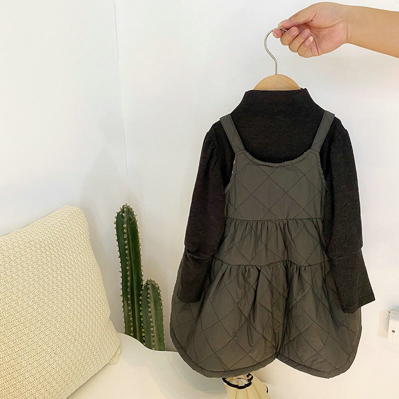 Girls Fashion High Neck Base Shirt And Pleated Suspender Skirt Set