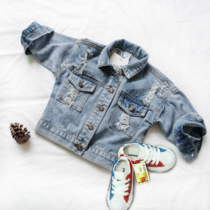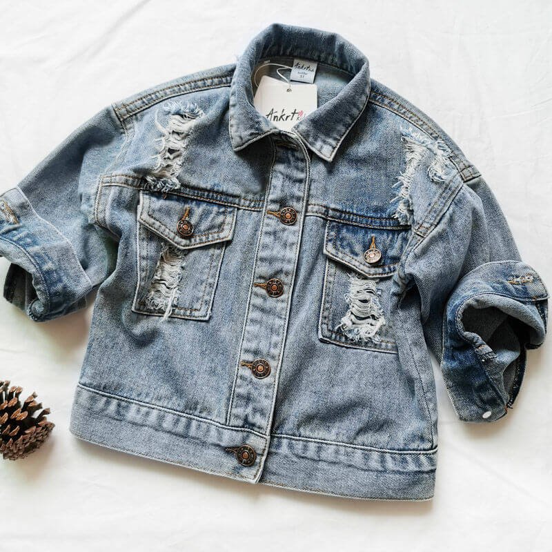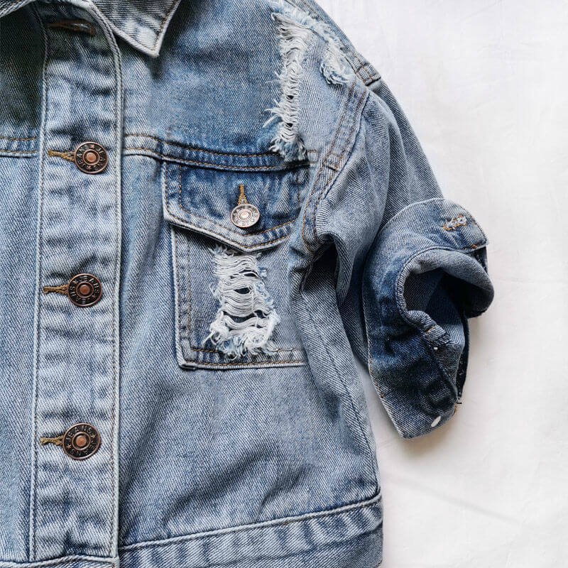 Girls Fashion Hole Design Single-breasted Denim Coat