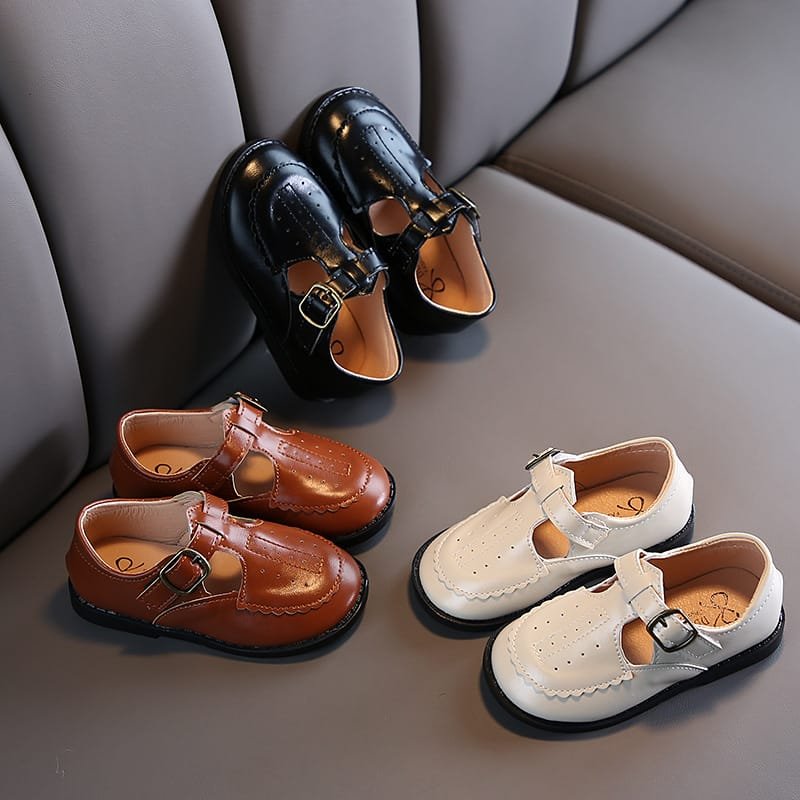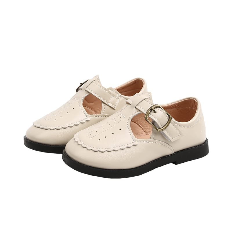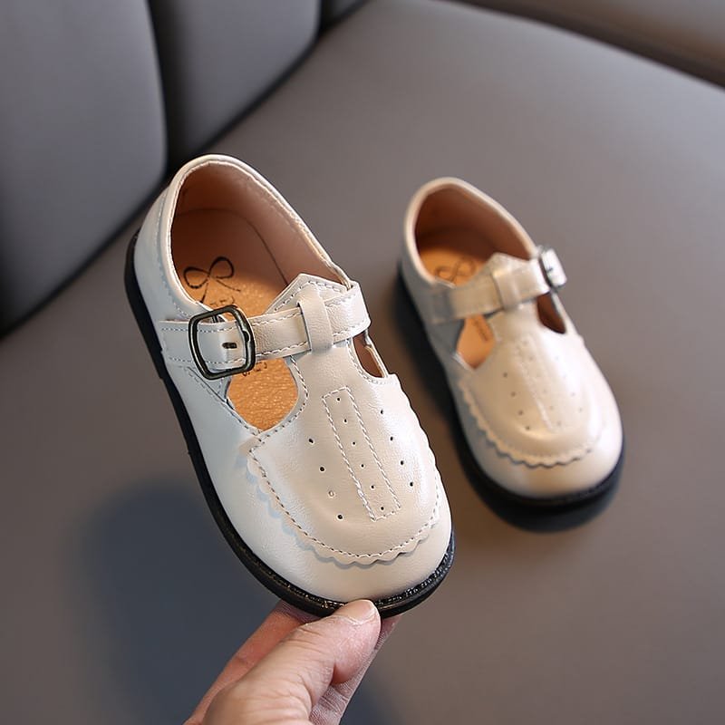 Girls Fashion Hollow Out Arc Edge Design Solid Color PU Flats