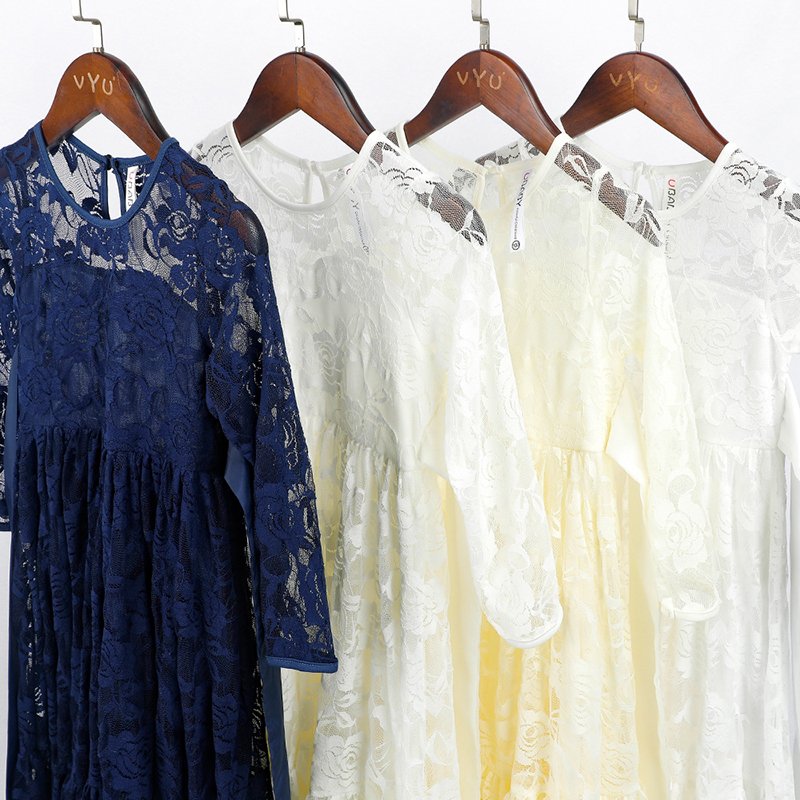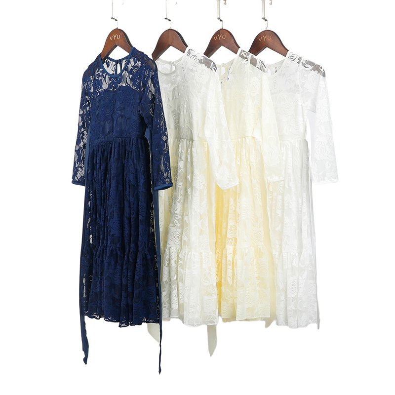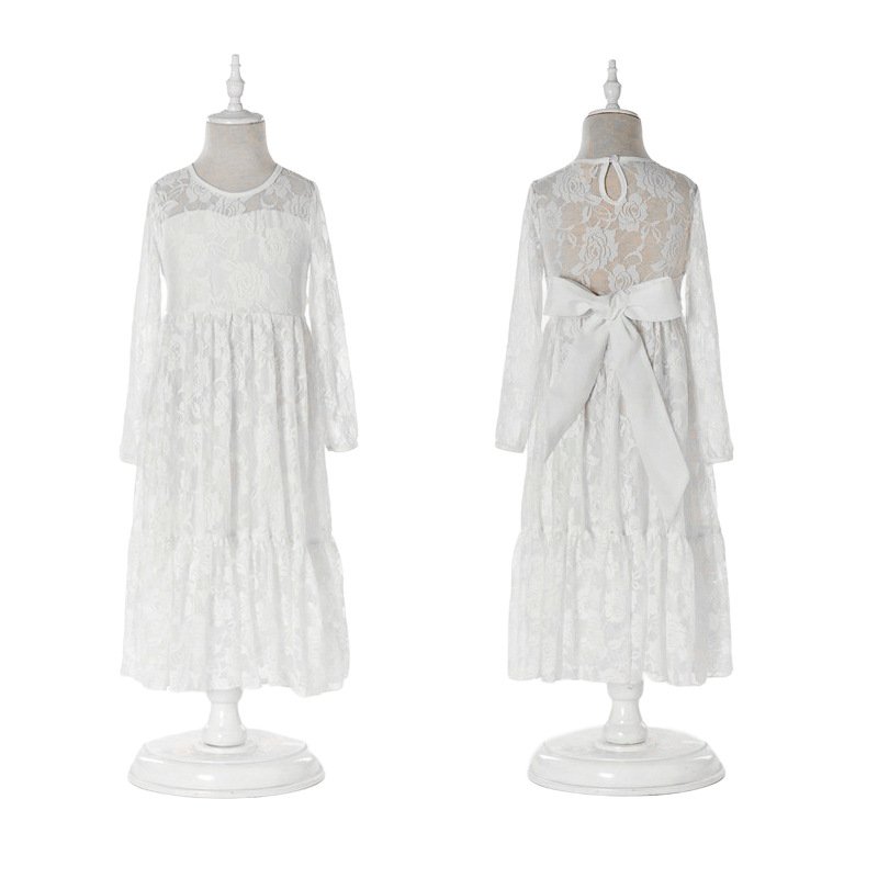 Girls Fashion Lace And Rose Embroidered Bow Belt Princess Dress