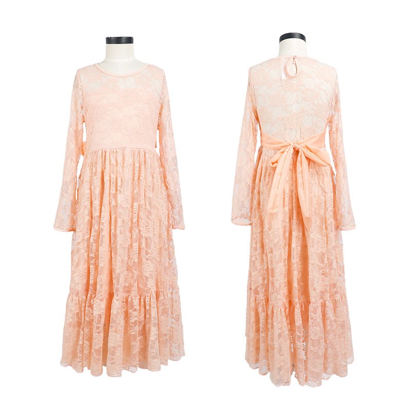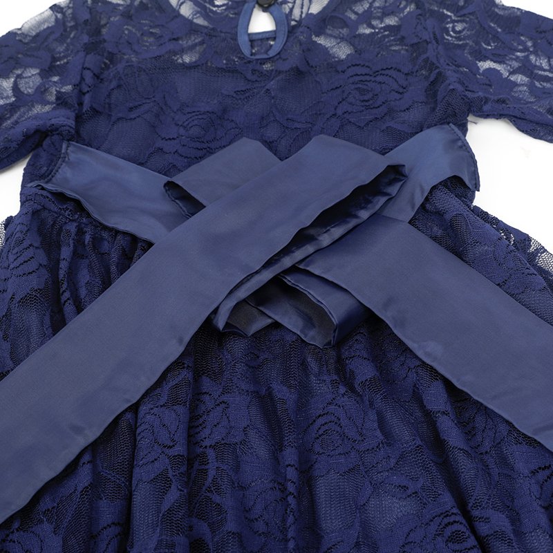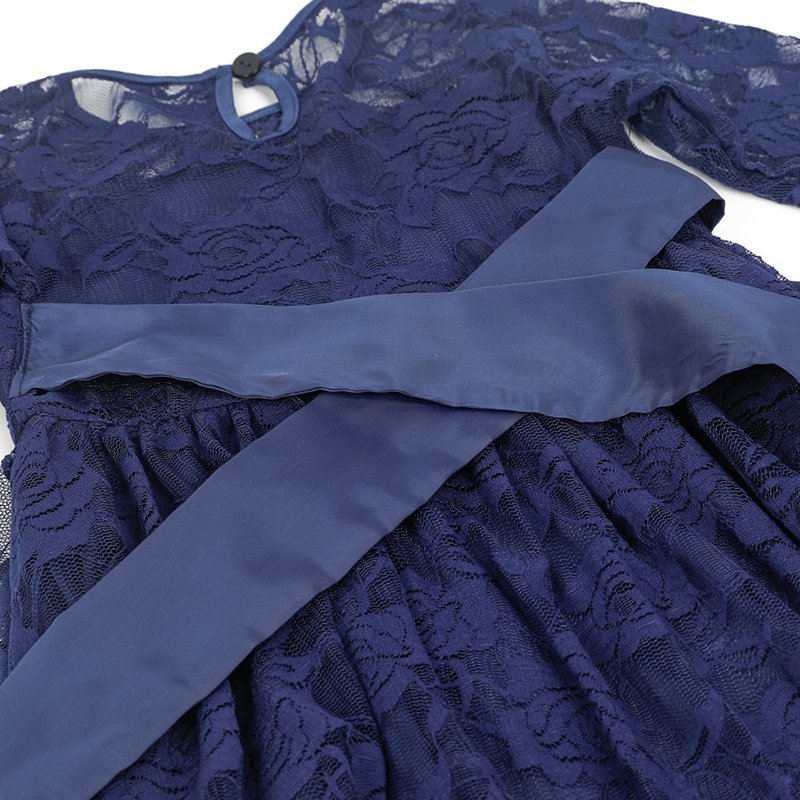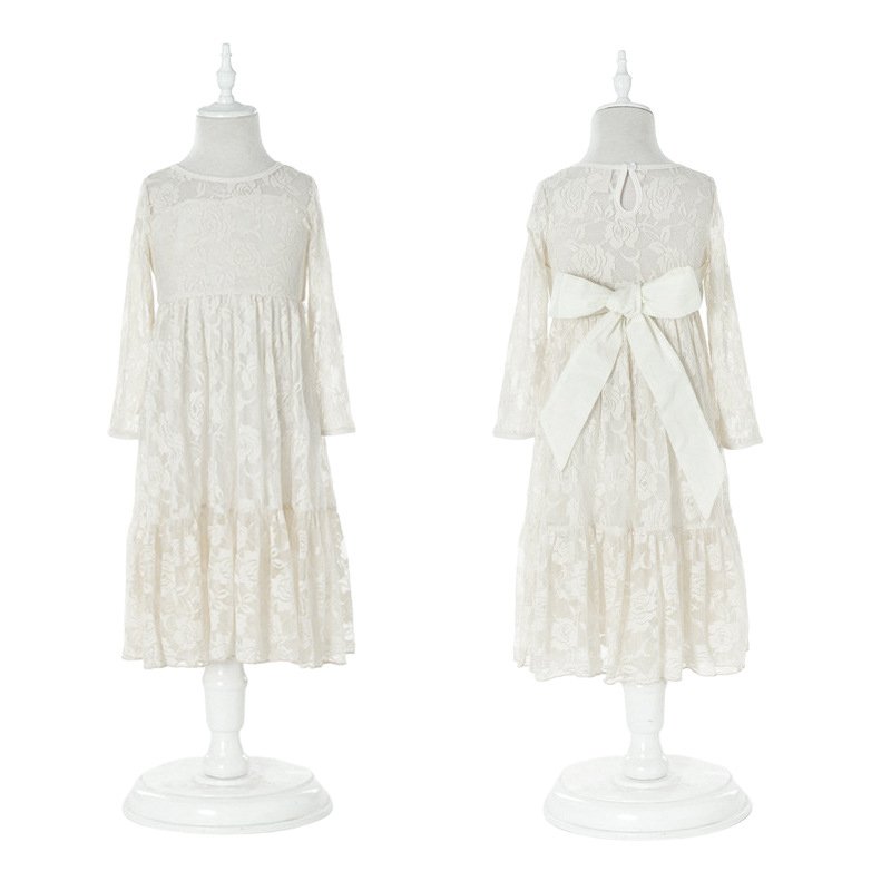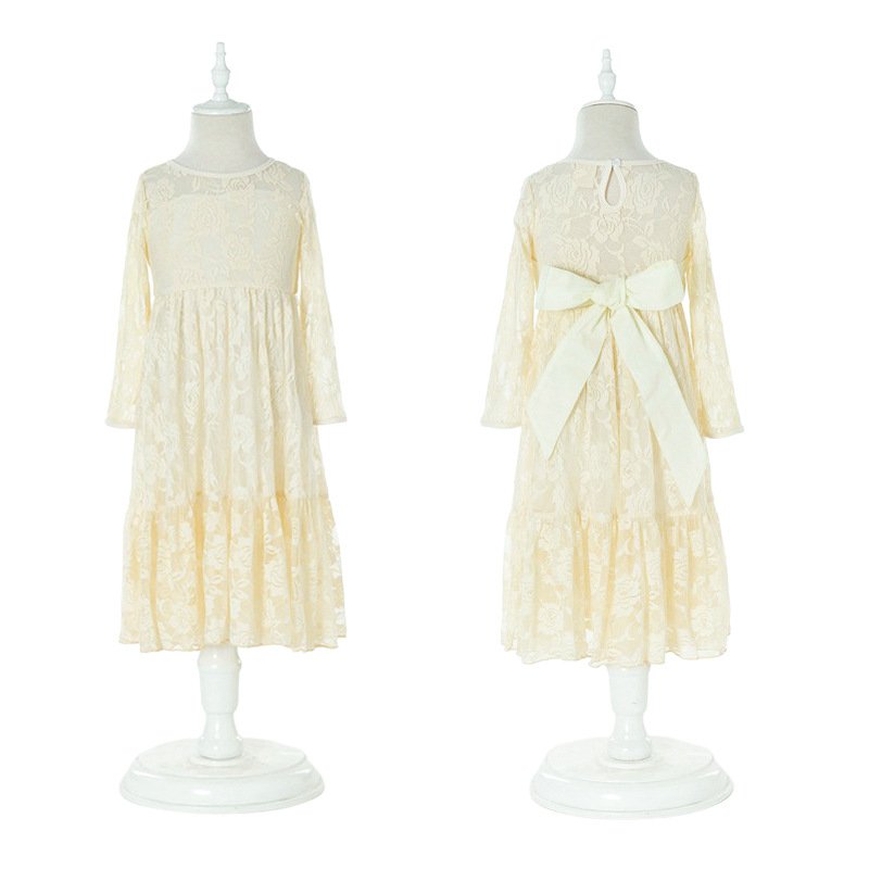 Girls Fashion Lace And Rose Embroidered Bow Belt Princess Dress