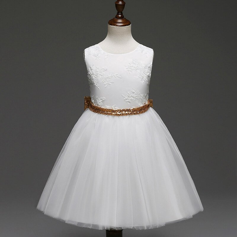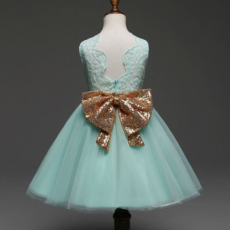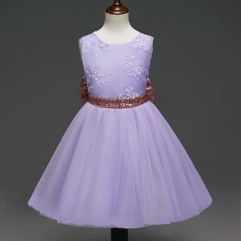 Girls Fashion Lace Bowknot Sequins Design Fluffy Dress