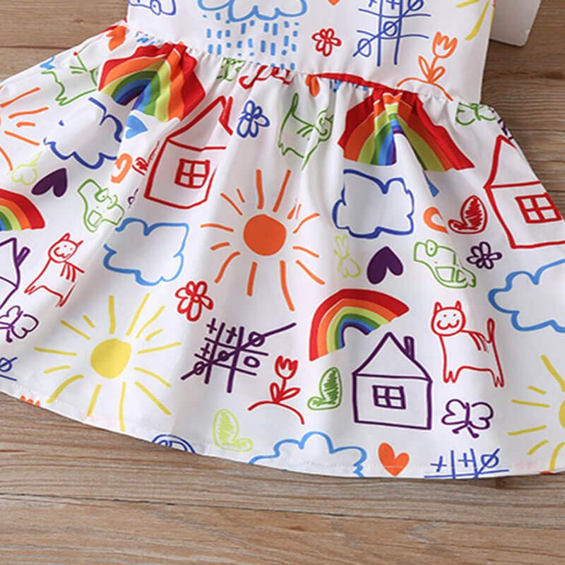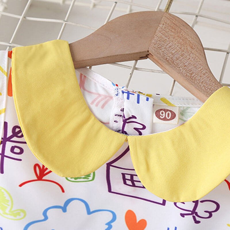Girls Fashion Lapel Design Cartoon Pattern Dress