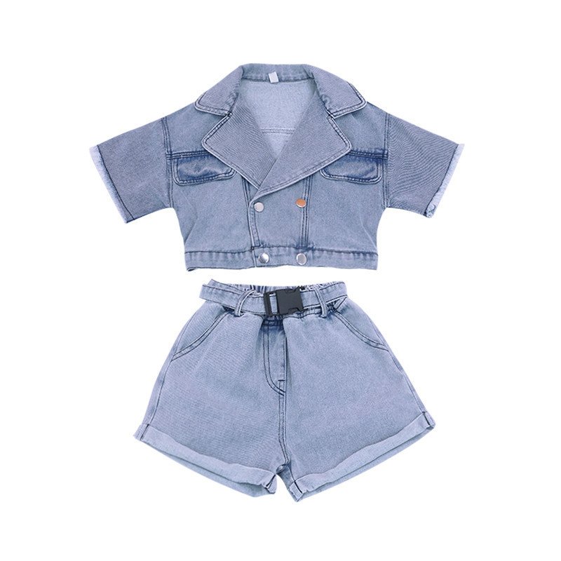 Girls Fashion Lapel Design Short-sleeves Tops And Shorts Set