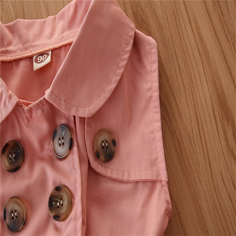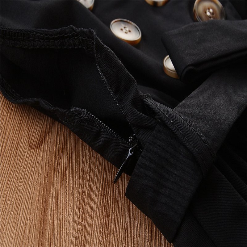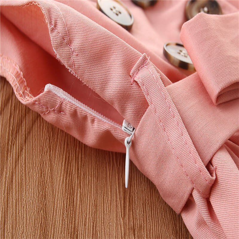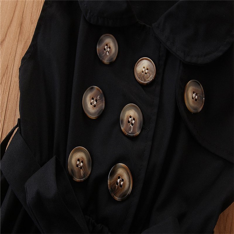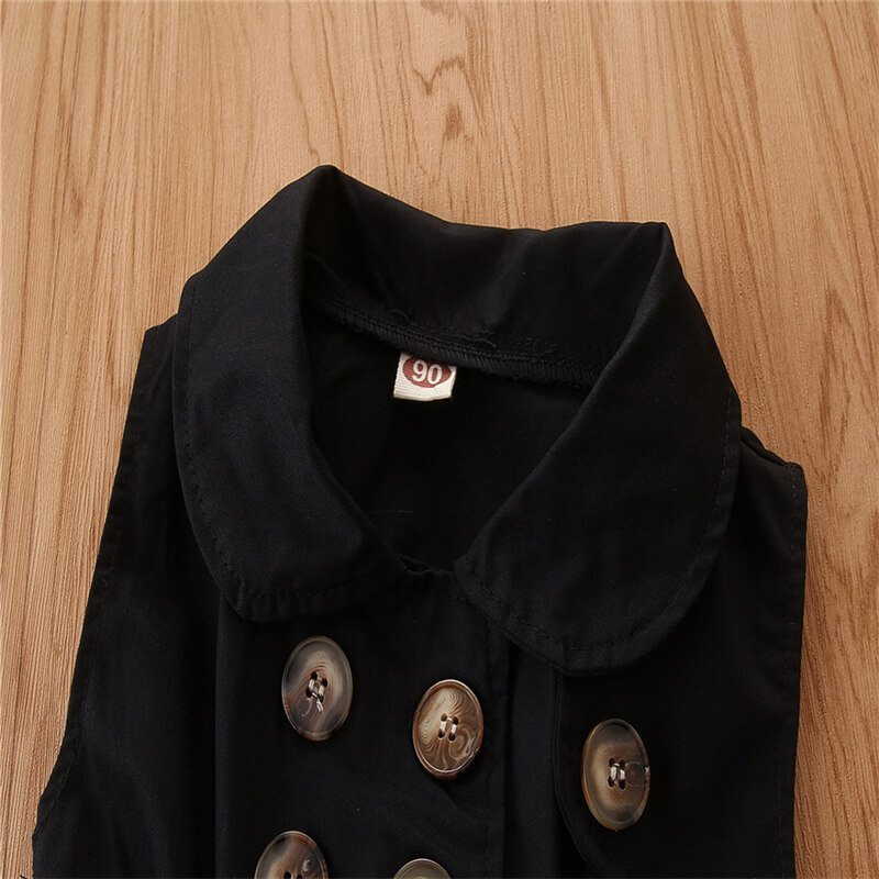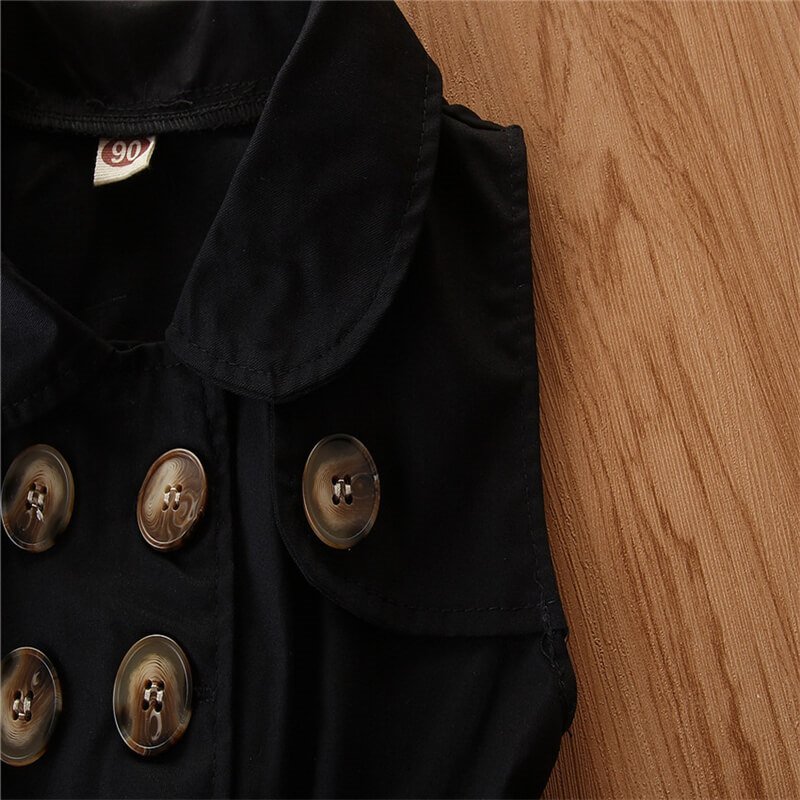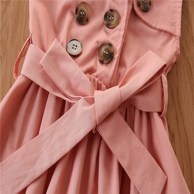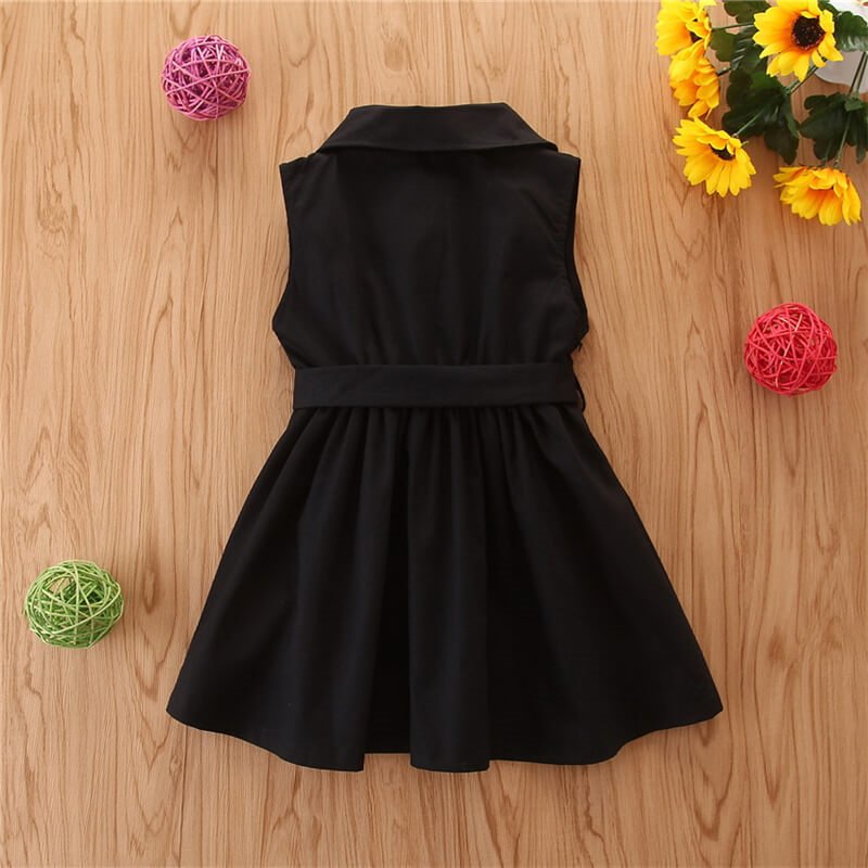 Girls Fashion Lapel Double Single Row Sleeveless Dress
