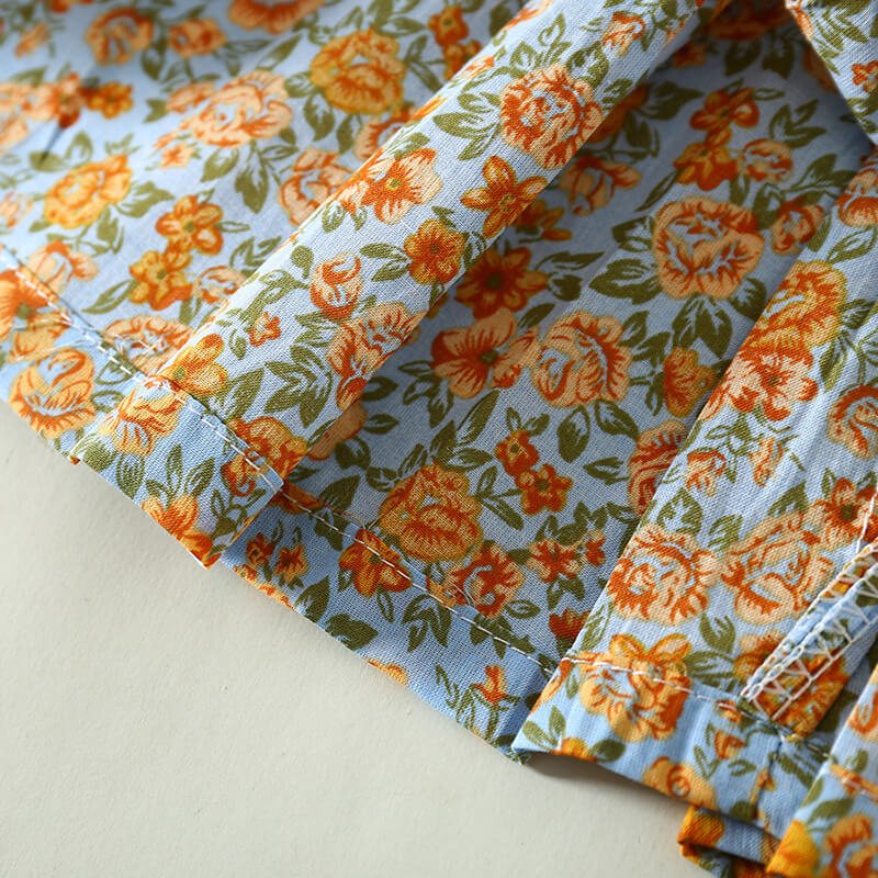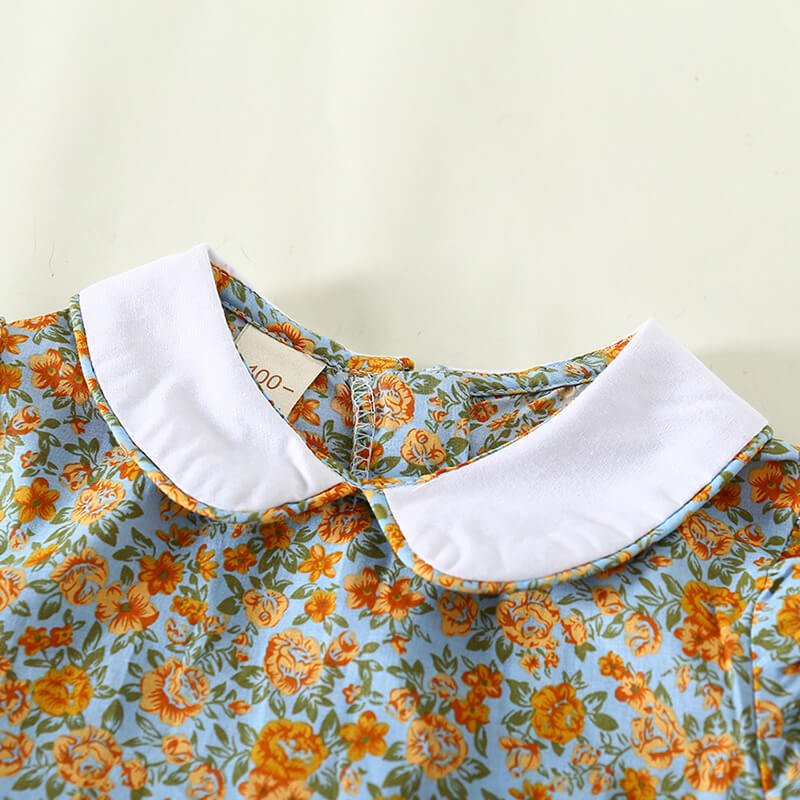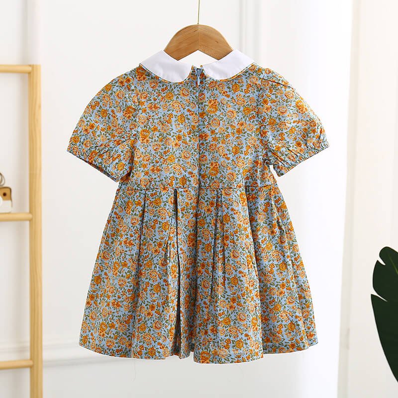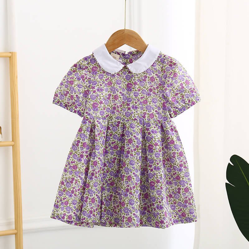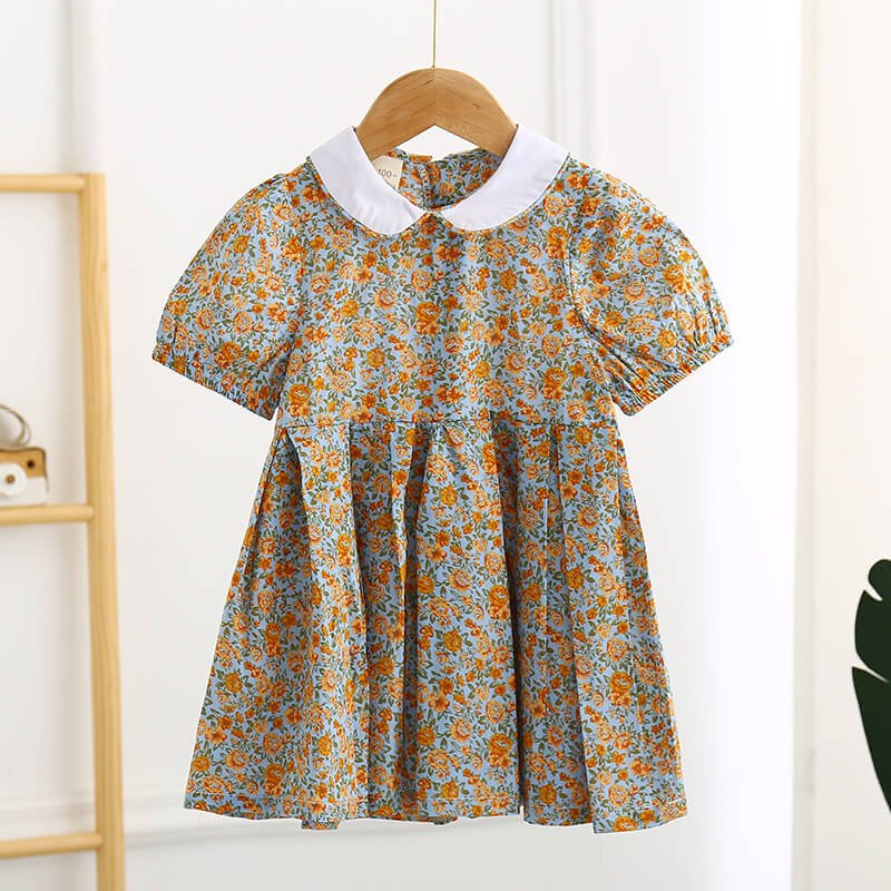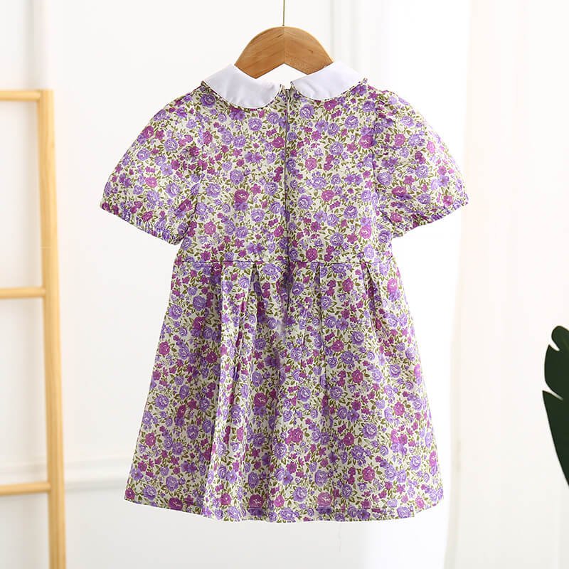 Girls Fashion Lapel Short-sleeves Floral Dress