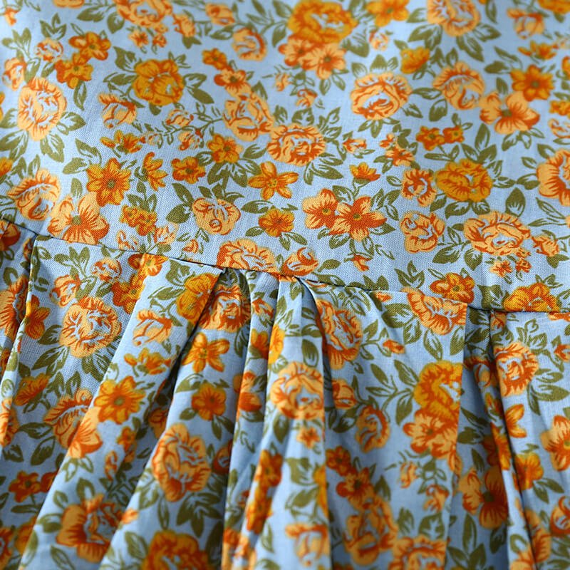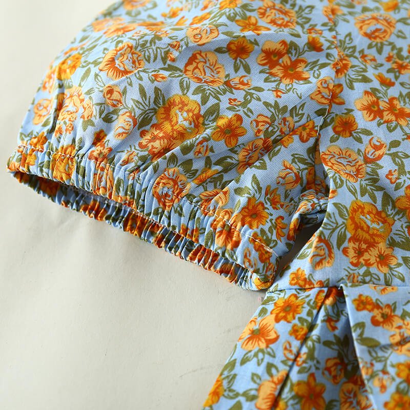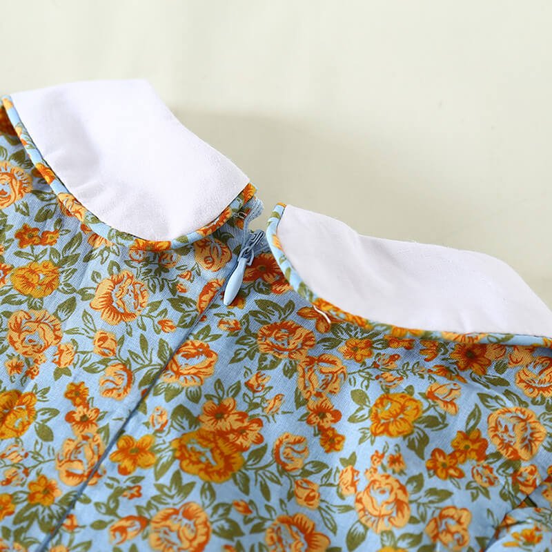 Girls Fashion Lapel Short-sleeves Floral Dress
