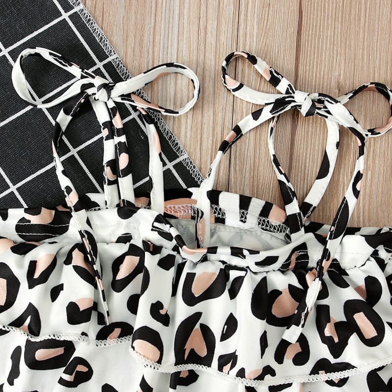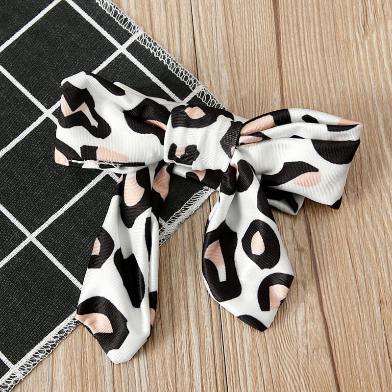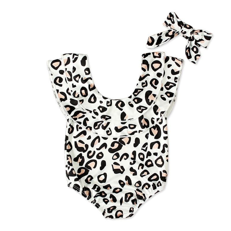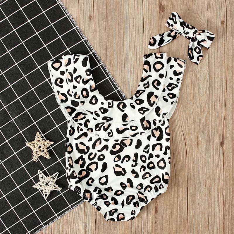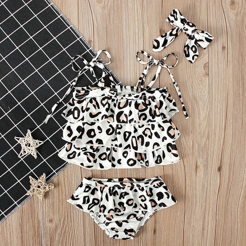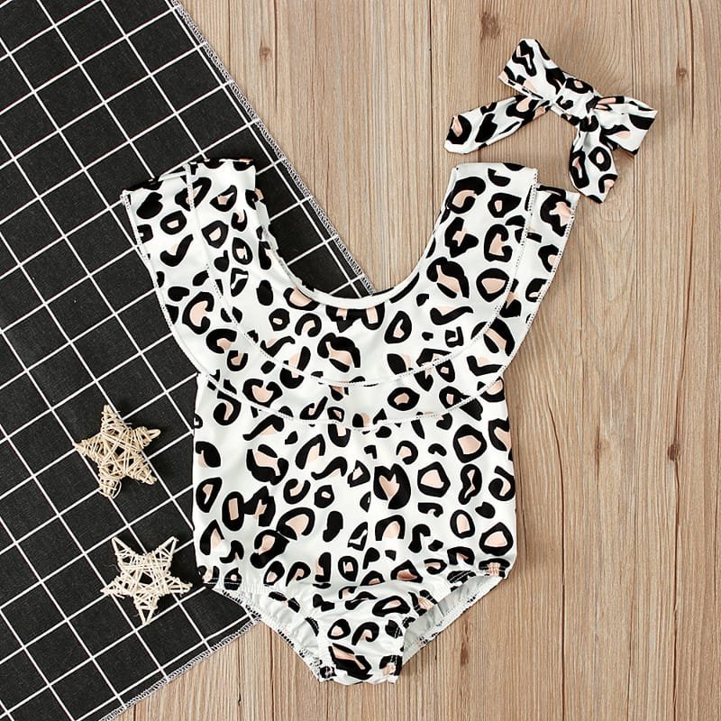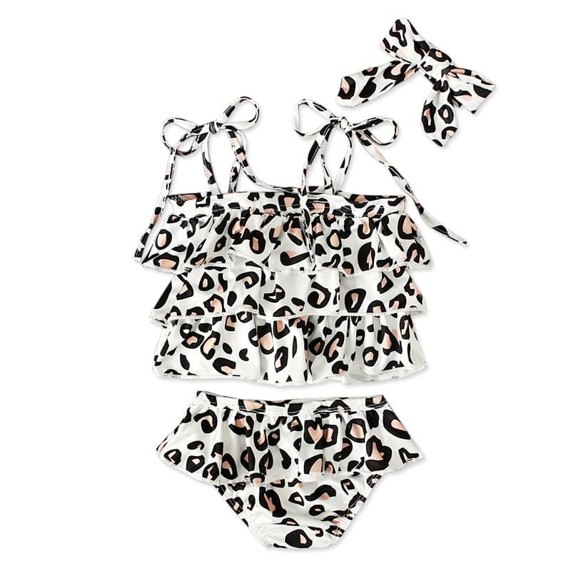 Girls Fashion Leopard Pattern Swimwear With Headband Set