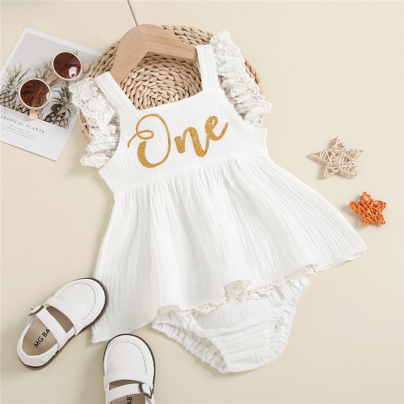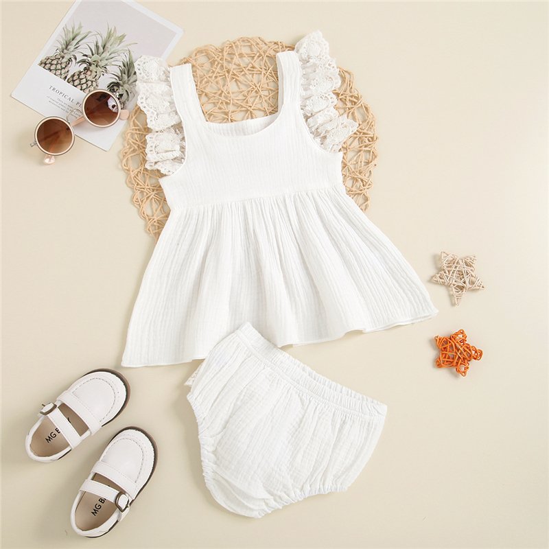 Girls Fashion Letter Pattern Lace Design Tops And Shorts Set