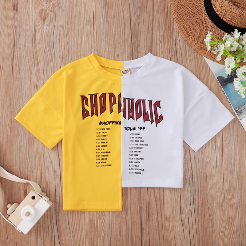 Girls Fashion Letter Pattern Spliced T-Shirt