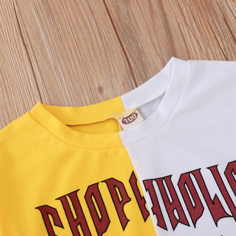 Girls Fashion Letter Pattern Spliced T-Shirt