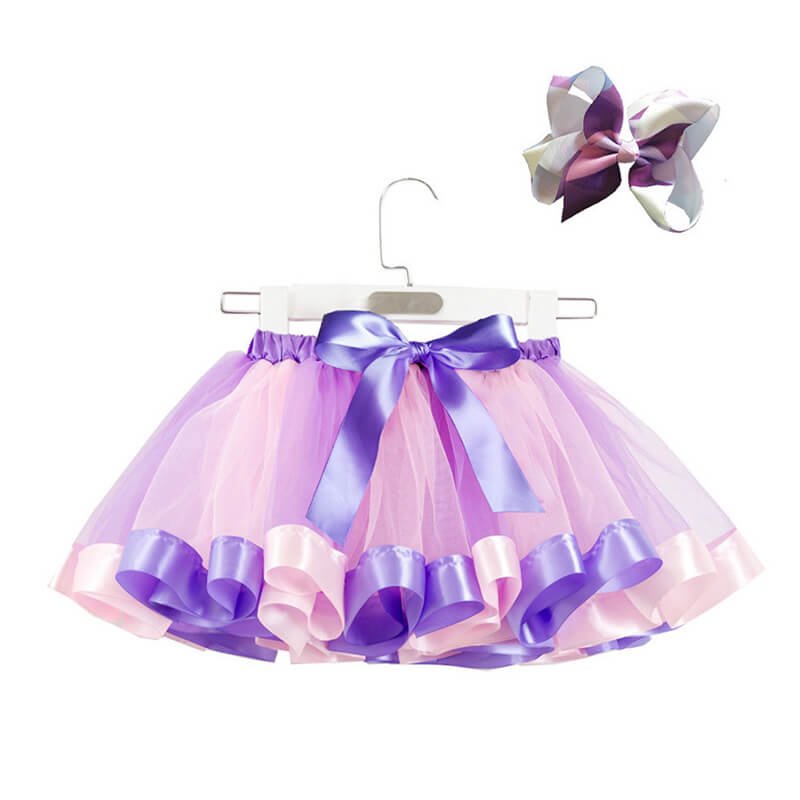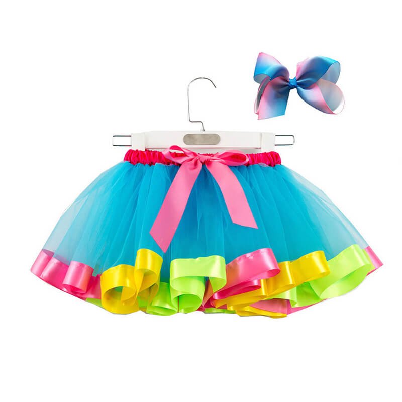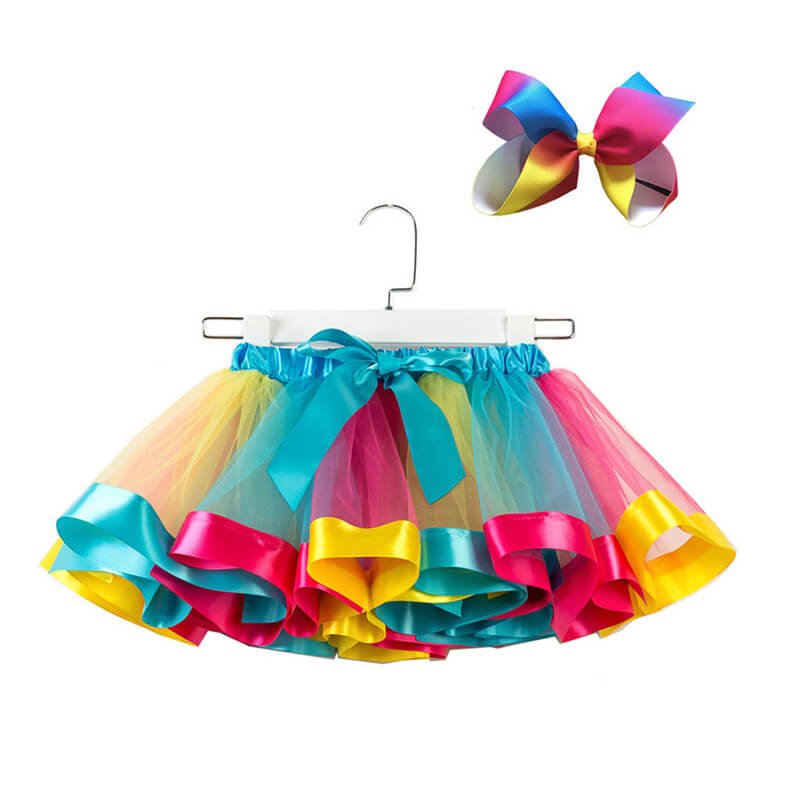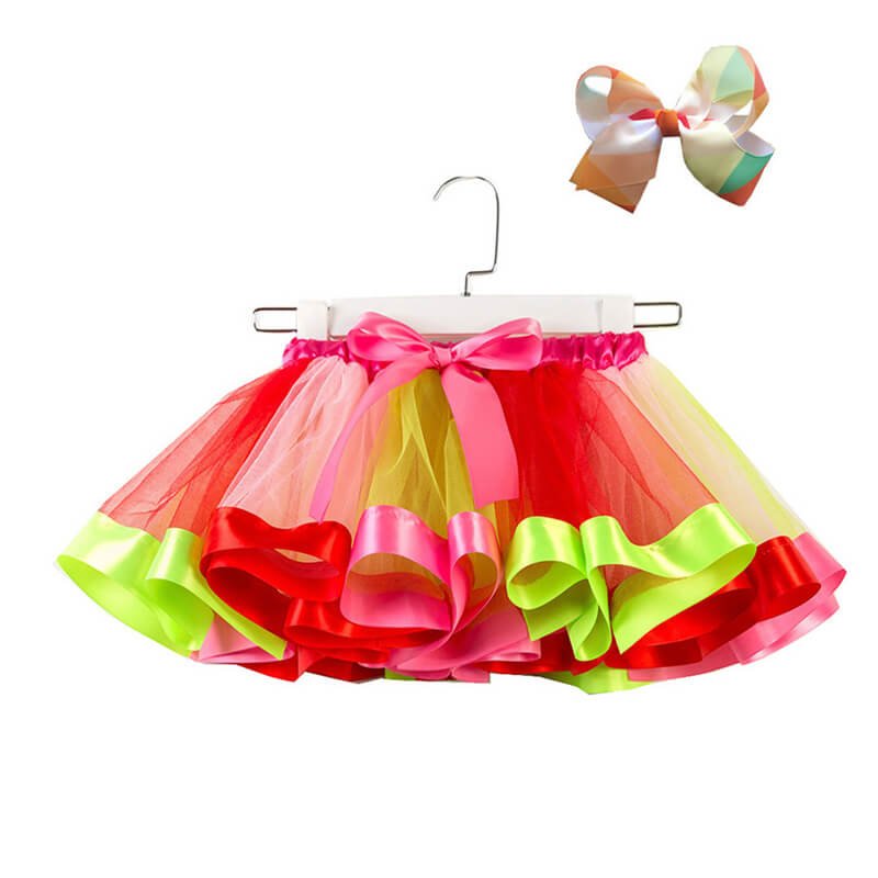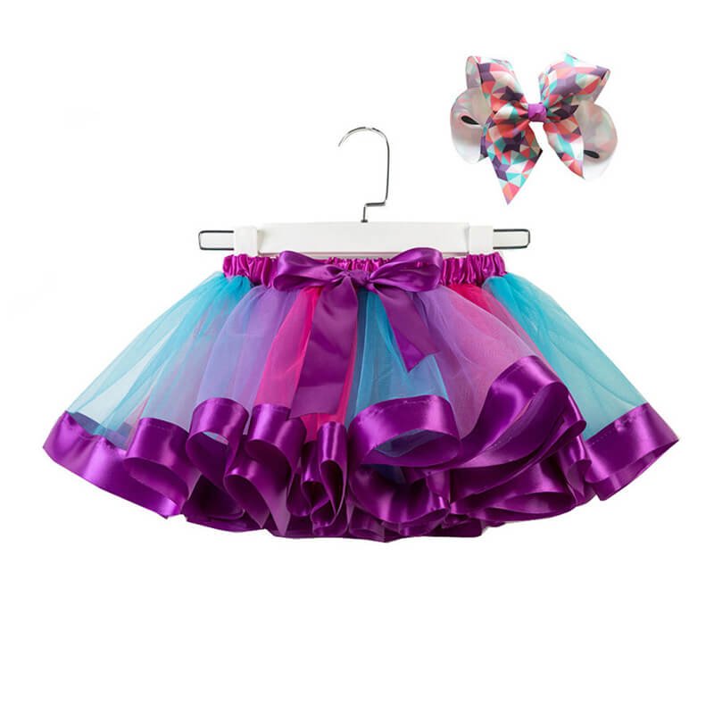 Girls Fashion Mesh Fluffy Colorful Skirt With Headband Set