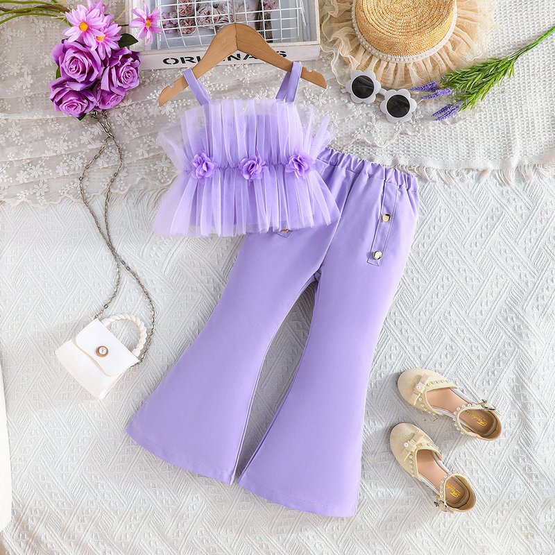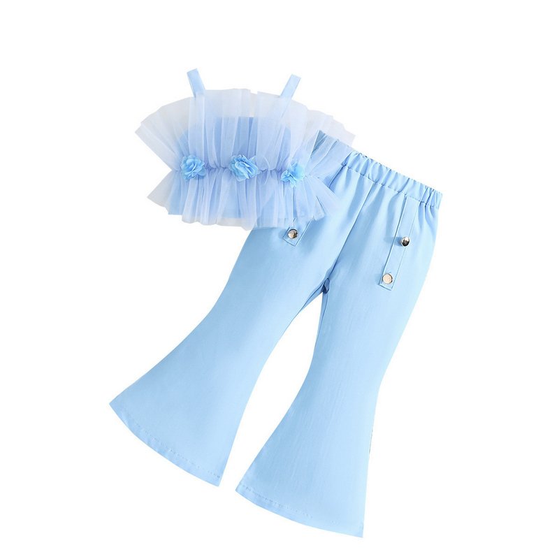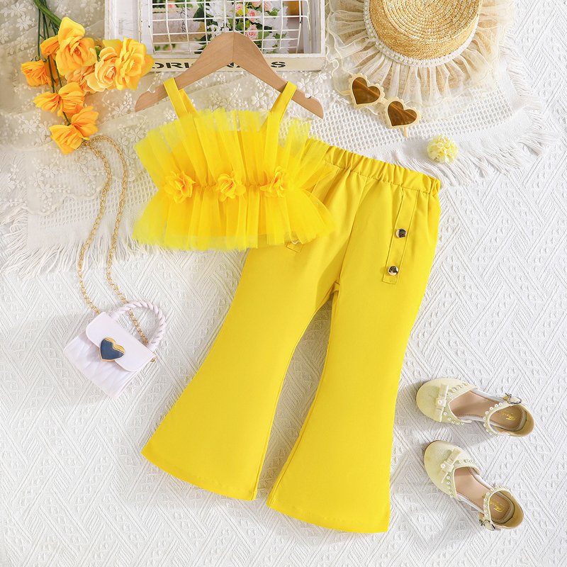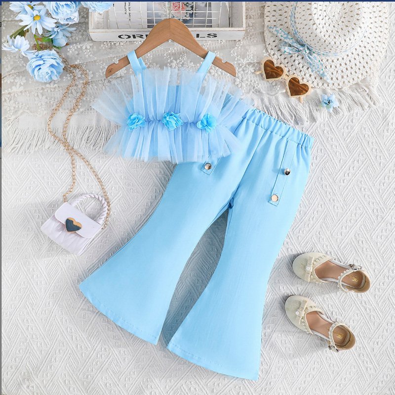 Girls Fashion Mesh Sling Top And Pants Two-Piece Set