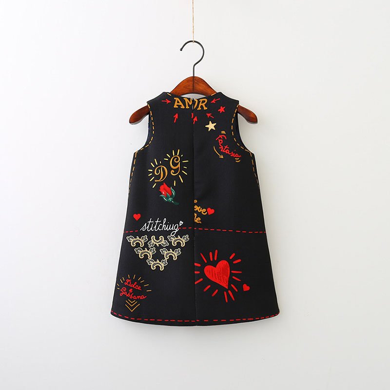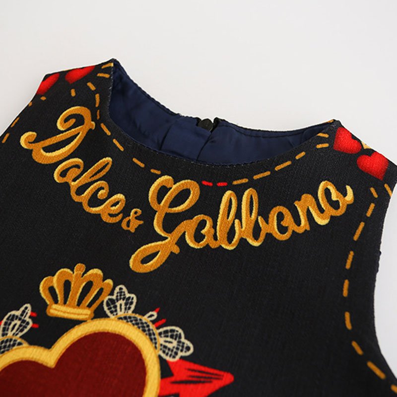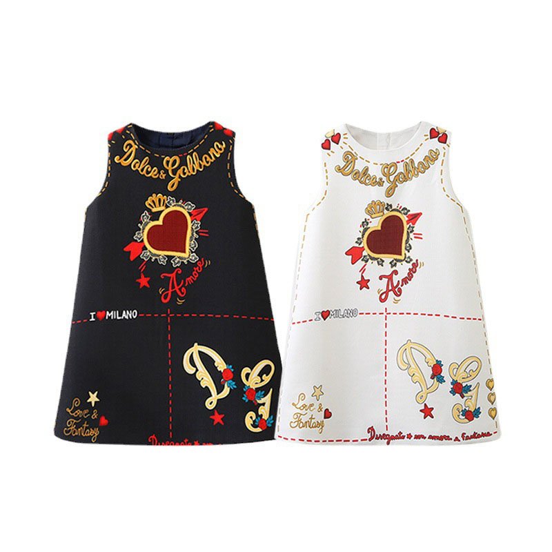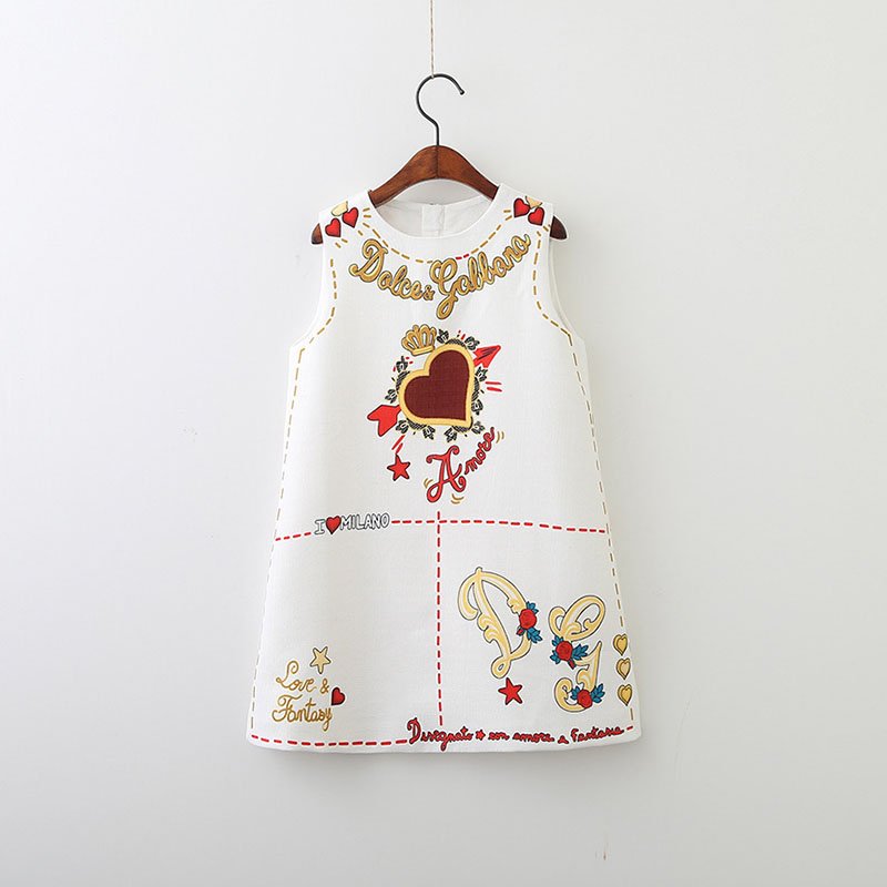 Girls Fashion Notation Heart Letter Pattern Sleeveless Dress