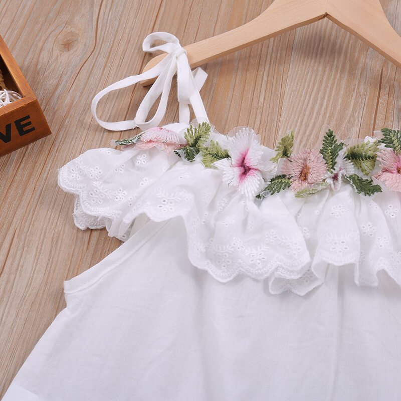 Girls Fashion Off-the-Shoulder Flower Decor Tops And Ripped Jean Shorts Set