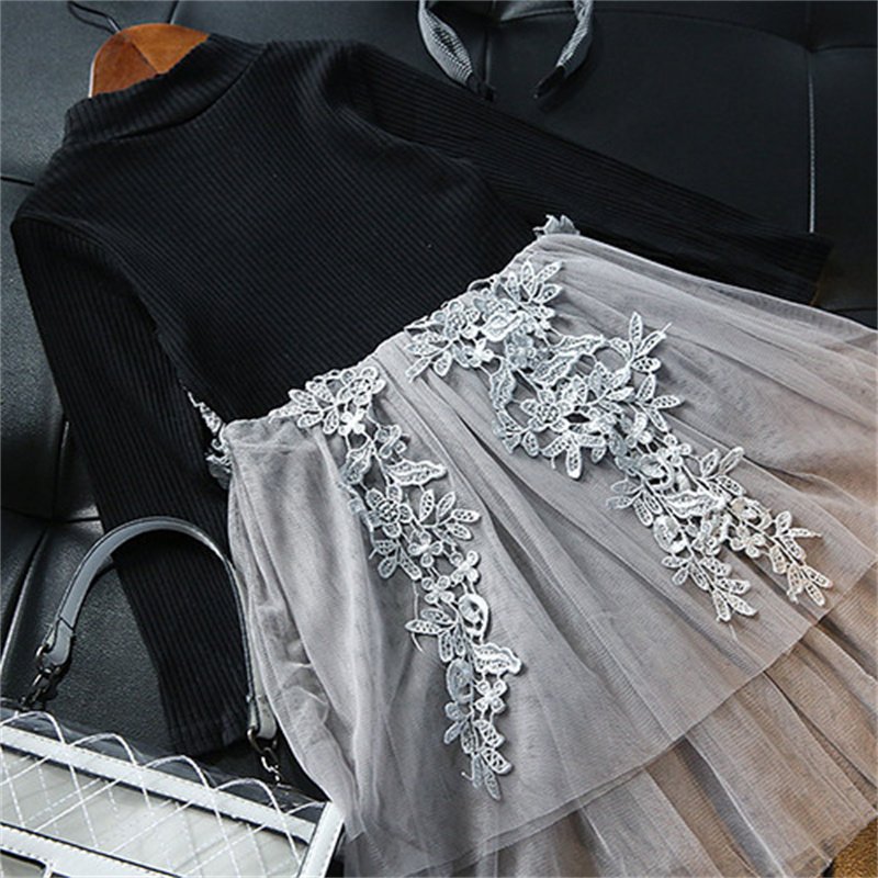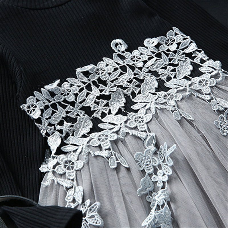 Girls Fashion Patchwork Knitted Lace Mesh Design Dress