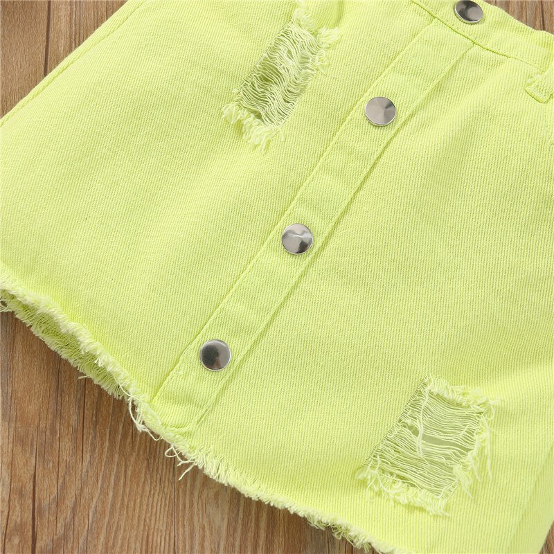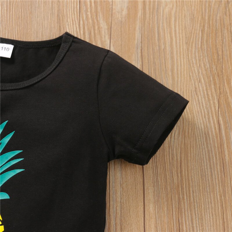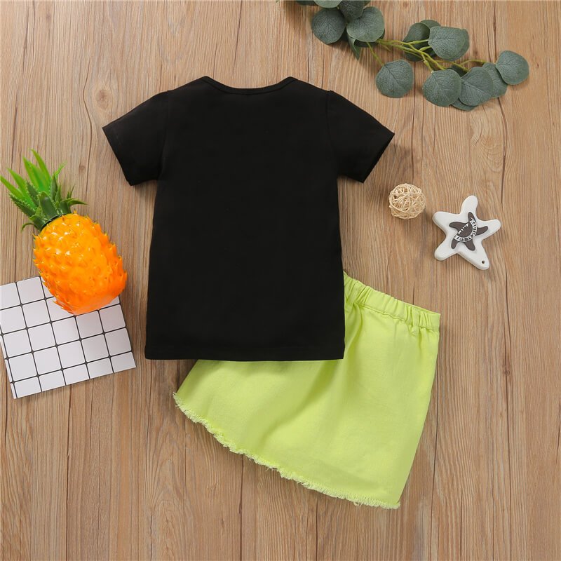 Girls Fashion Pineapple Pattern T-Shirt And Denim Skirt Set