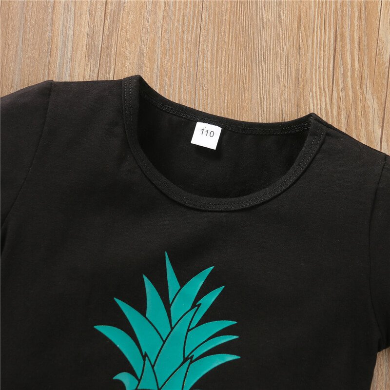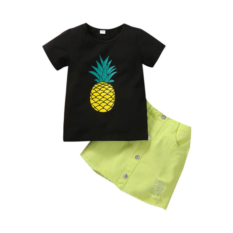 Girls Fashion Pineapple Pattern T-Shirt And Denim Skirt Set