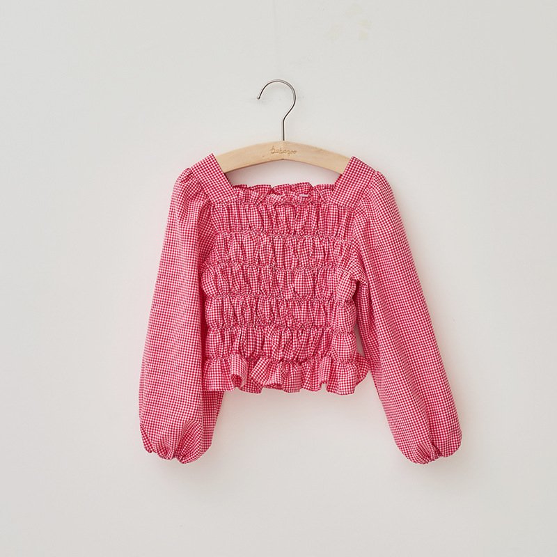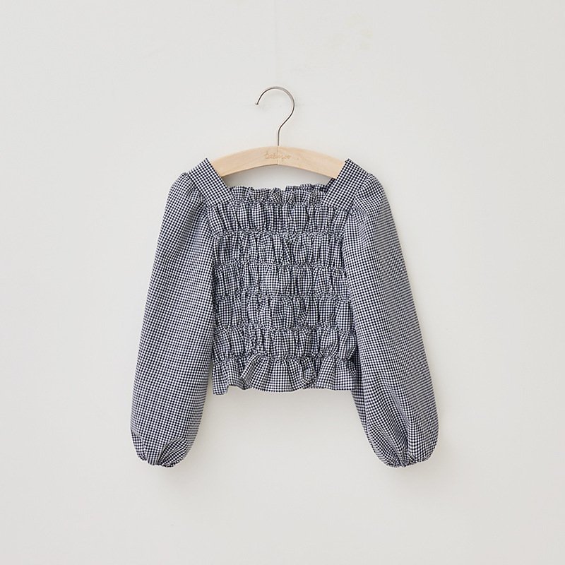 Girls Fashion Plaid Square Collar Puff Sleeve Long Sleeve Shirt