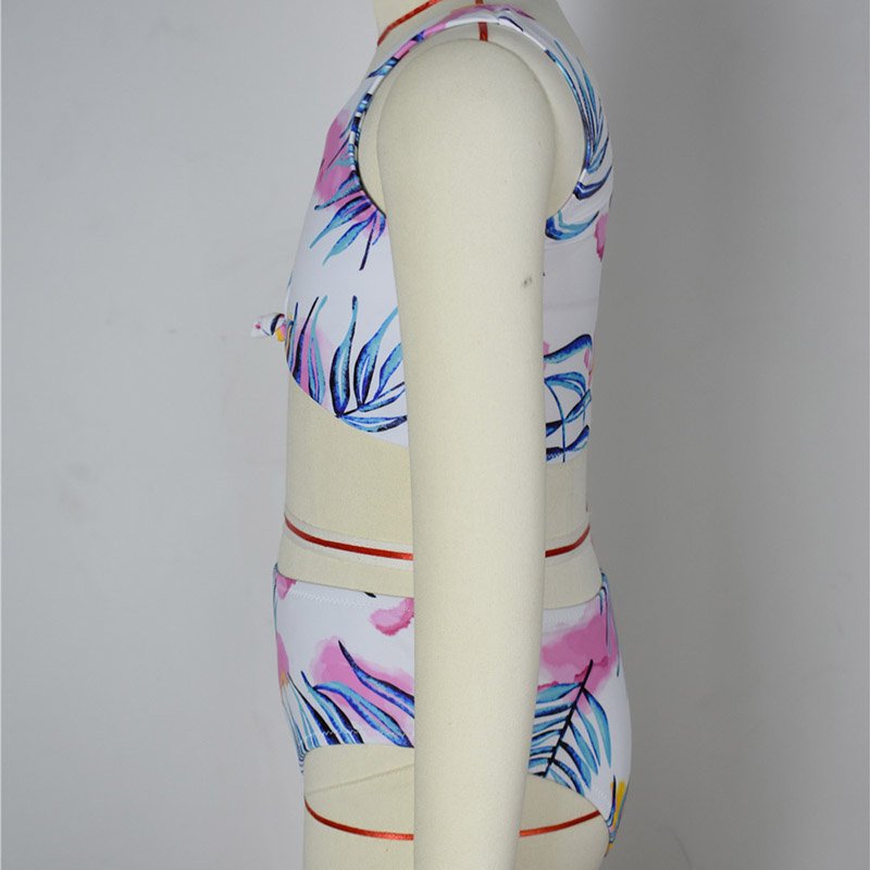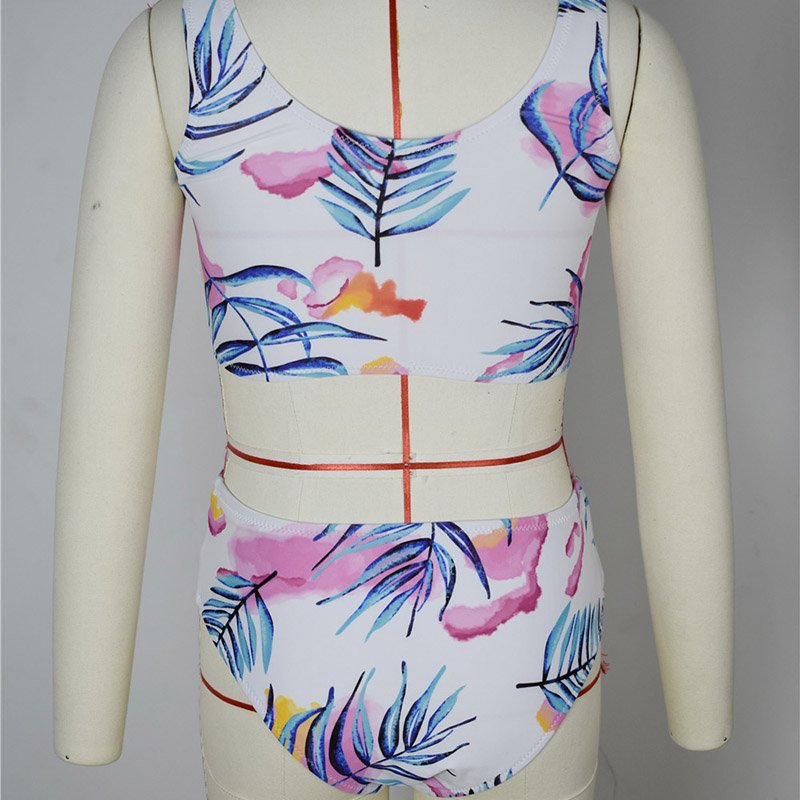 Girls Fashion Plants Printed Tops And Bottoms Bikini Suit