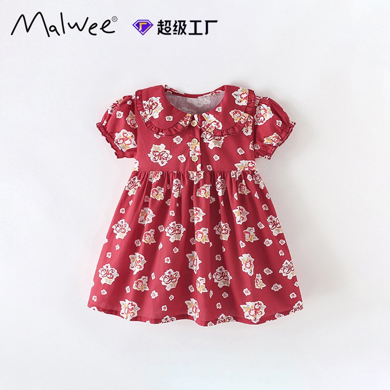 Girls Fashion Printed Short Sleeve Dress