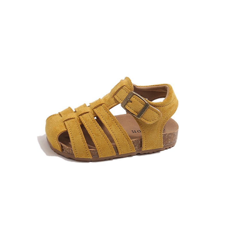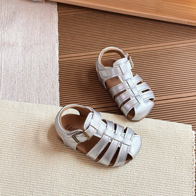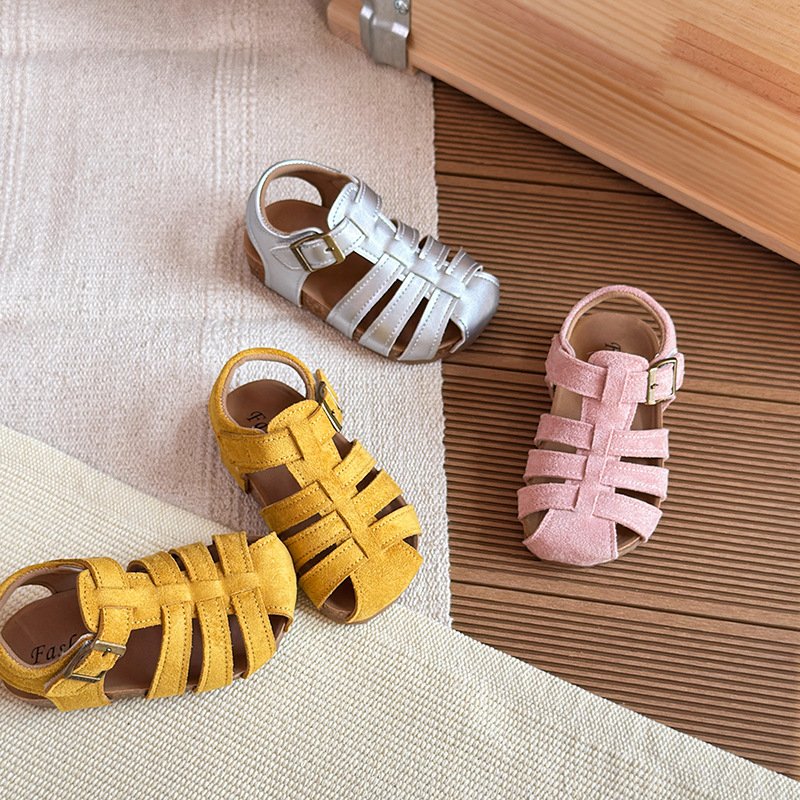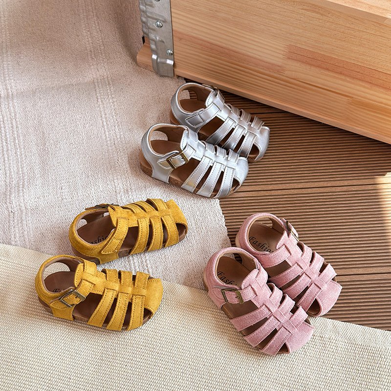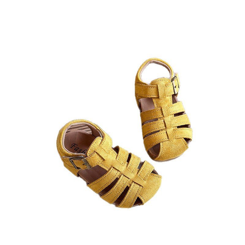 Girls Fashion Retro Solid Color Woven Hollow Sandals