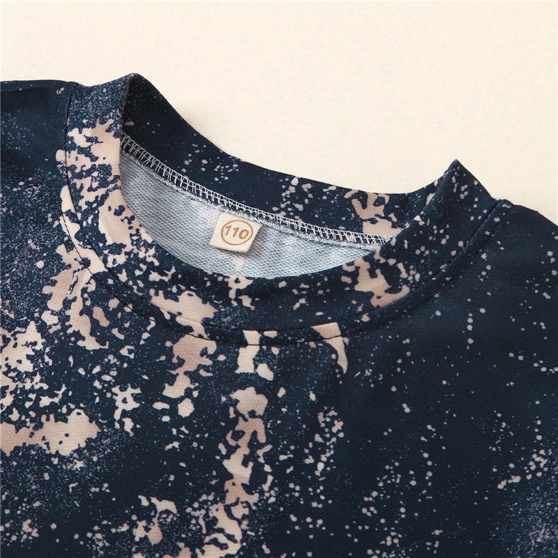 Girls Fashion Round Neck Tie-dye Casual Dress